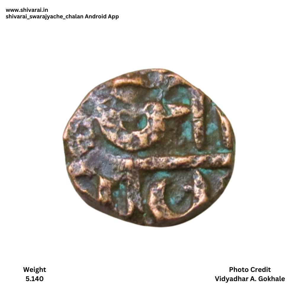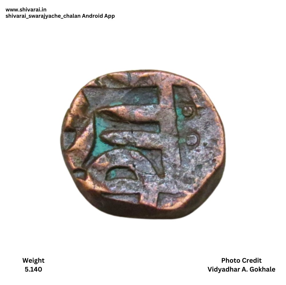 नमुना ६, अर्धी शिवराई, नमुना ५ प्रमाणे असून उ च्या लिखावटीत फरक आहे.