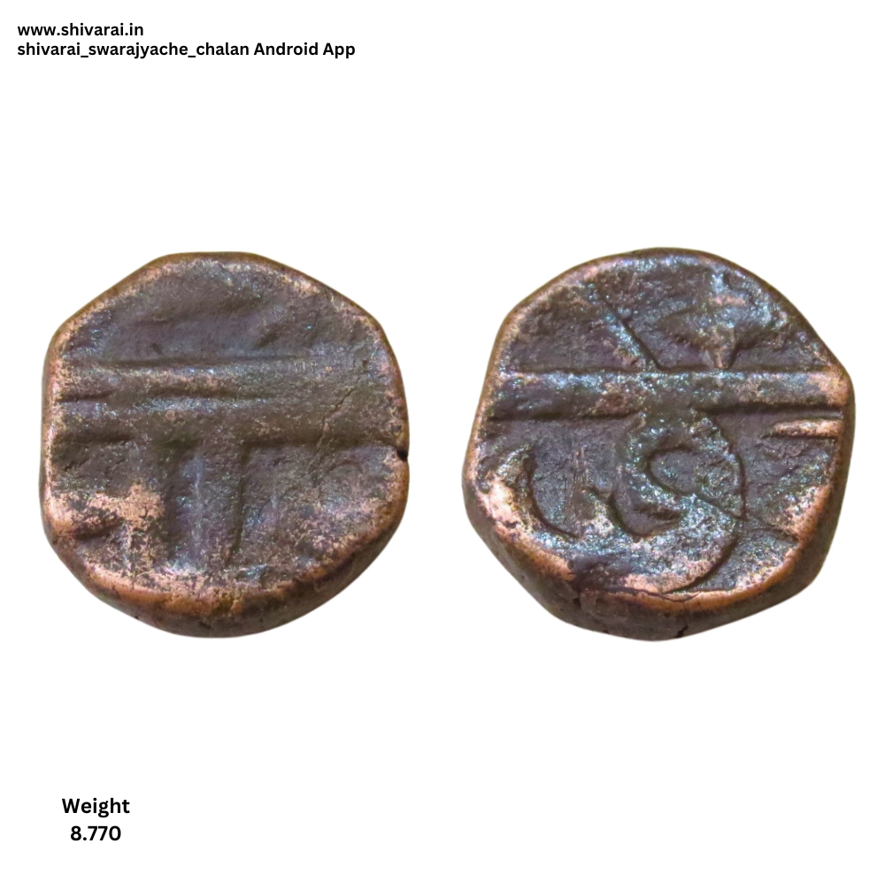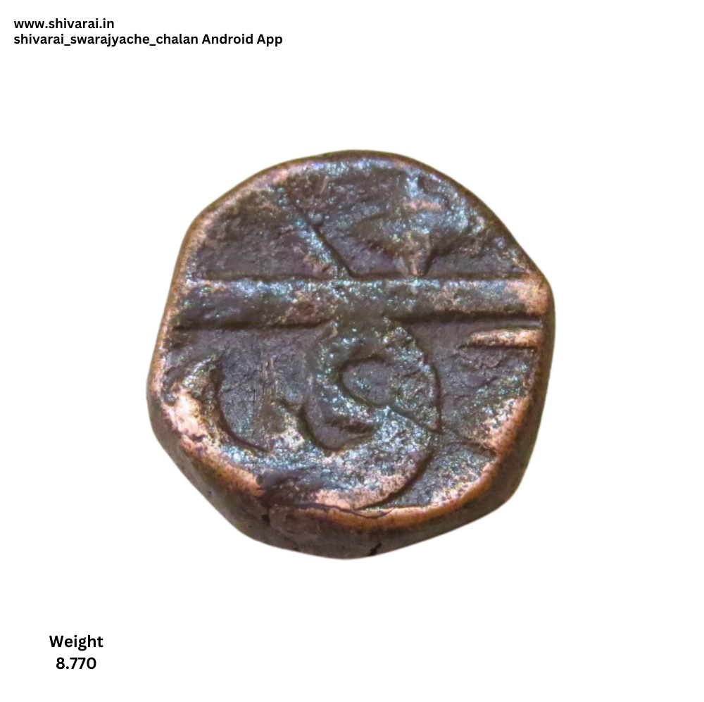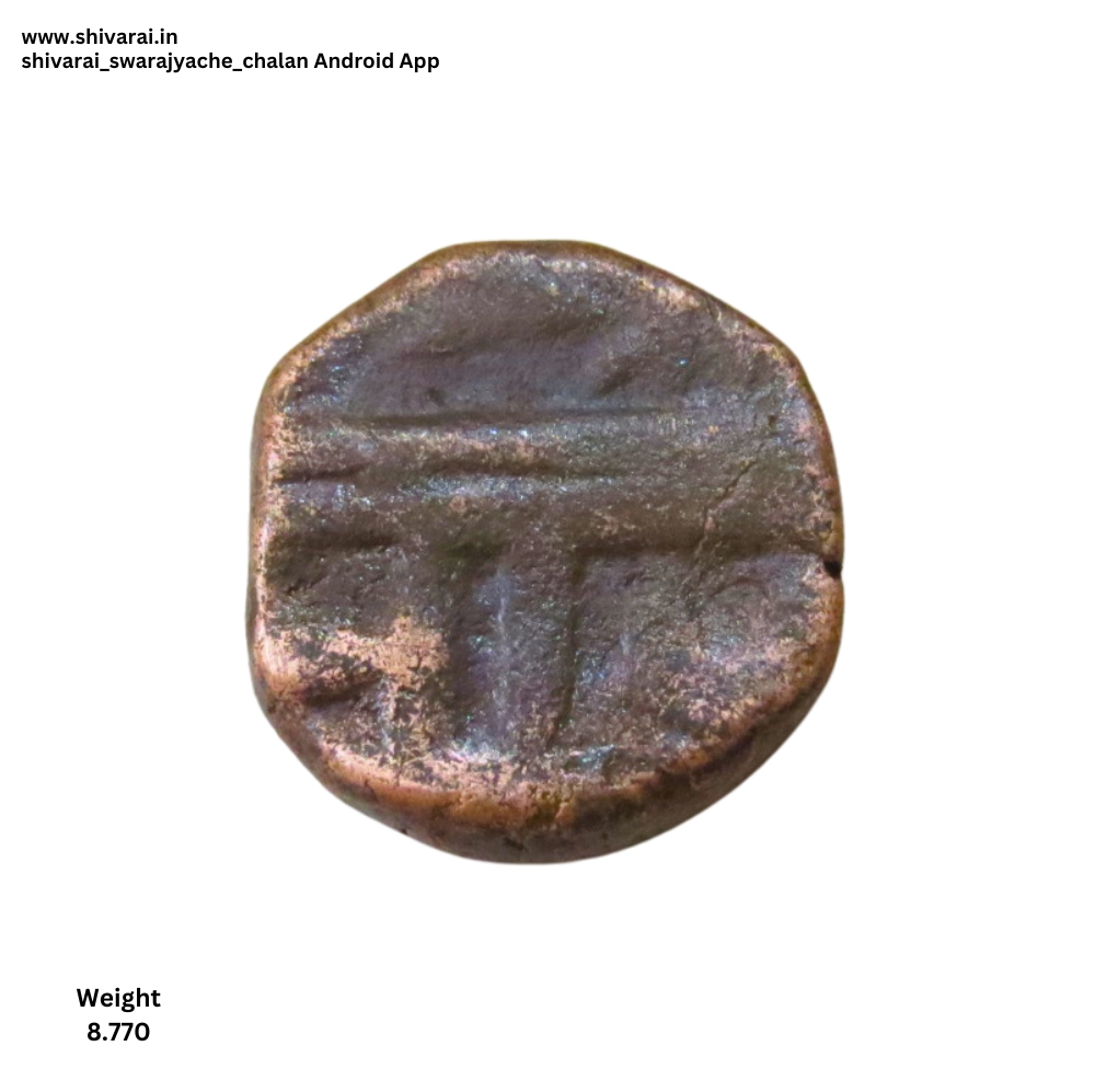 चिन्हांकीत शिवराई श्री आधी चंद्रकोर आणि पोकळ गोल चिन्ह. छत्र च्या पोटात डॉट. छत्र वर अधिक चिन्ह त्याच्या बाजूला डॉट्स. नाण्याच्या दोन्ही बाजू स्पष्ट आणि ठळक.