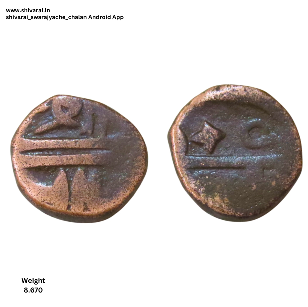 दुदांडी शिवराई. श्री ची लहान लिखावट, छत्र वर अधिक चिन्ह, त्याच्या दोन्ही बाजूला तीन डॉट. त्र नंतर तीन डॉट. छ च्या पोटात डॉट. दोन्ही बाजू स्पष्ट आणि ठळक. नाणे फोटो प्रमाणे.
