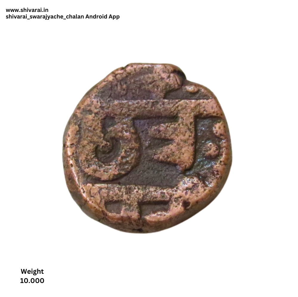 अधिक चिन्हांकीत शिवराई छत्र च्या वर अधिक चिन्ह. त्याच्या दोन्ही बाजूला डॉट चिन्ह. छत्र नंतर डॉट्स. दोन्ही बाजू अत्यंत स्पष्ट आणि ठळक.