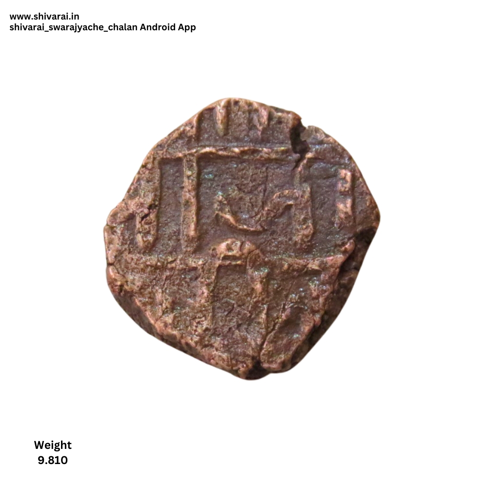 आयताकृती शिवराई शिवराईचा आयात आकार. छत्रपती भोवती जपमाळ नमुन्याची बॉर्डर. दोन्ही बाजू स्पष्ट आणि ठळक. नाणे फोटो प्रमाणे. वजन : ग्रॅम ९.८१०