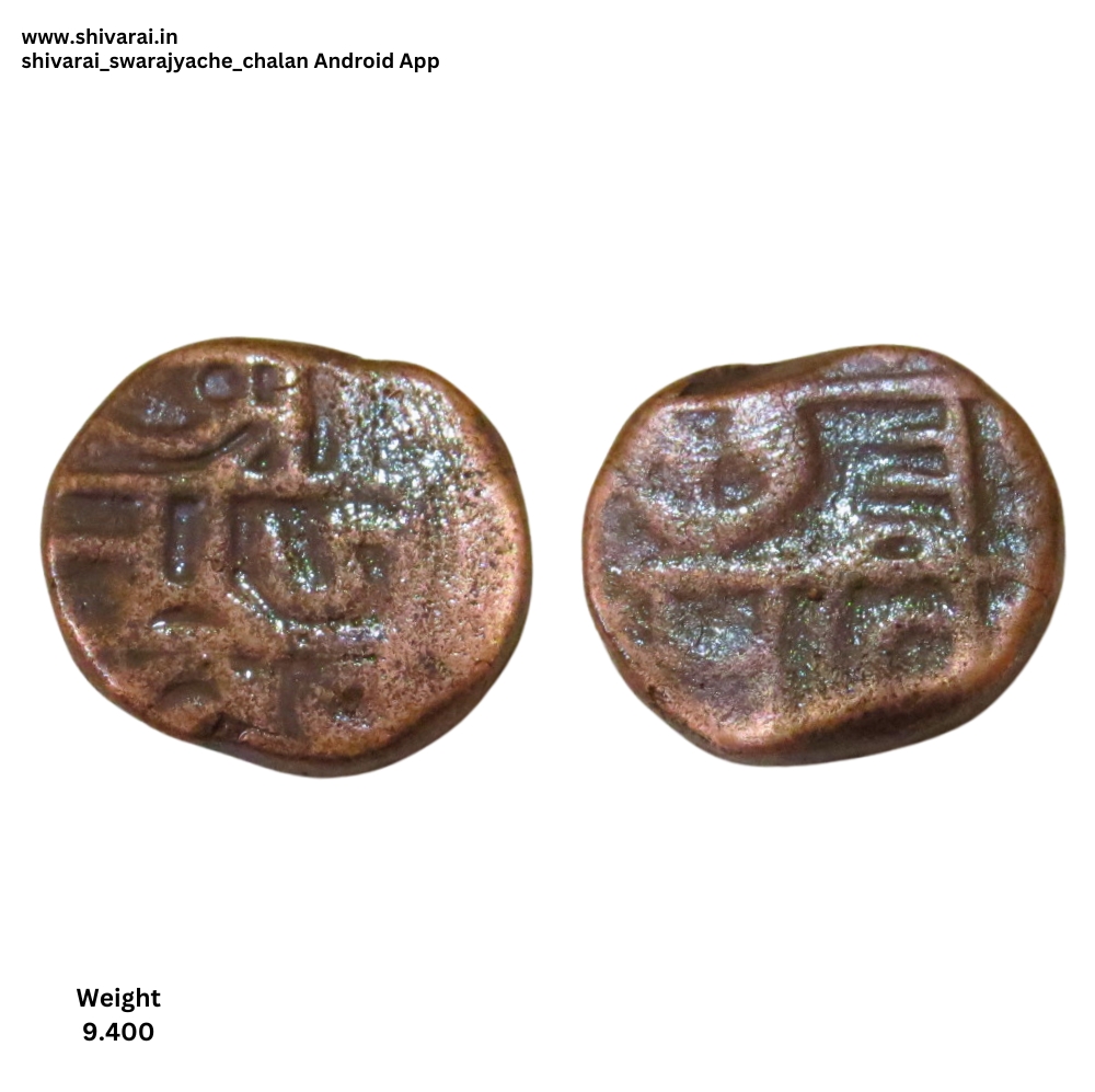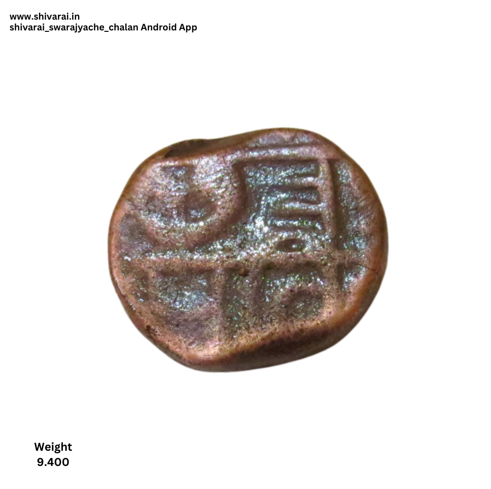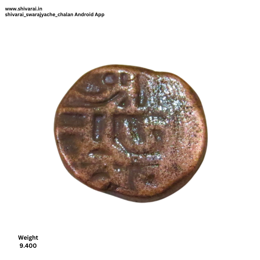 पुढील बाजूस नाण्याचा डाय ४५% सरकलेला. रा आधी दोन डॉट्स. र ची आडवी रेषा तलवार पात्याप्रमाणे वक्राकार. सिव नमुना. स ला पहिली वेलांटी. पुढील बाजूस अखंड रेषेची बॉर्डर दिसत आहे.