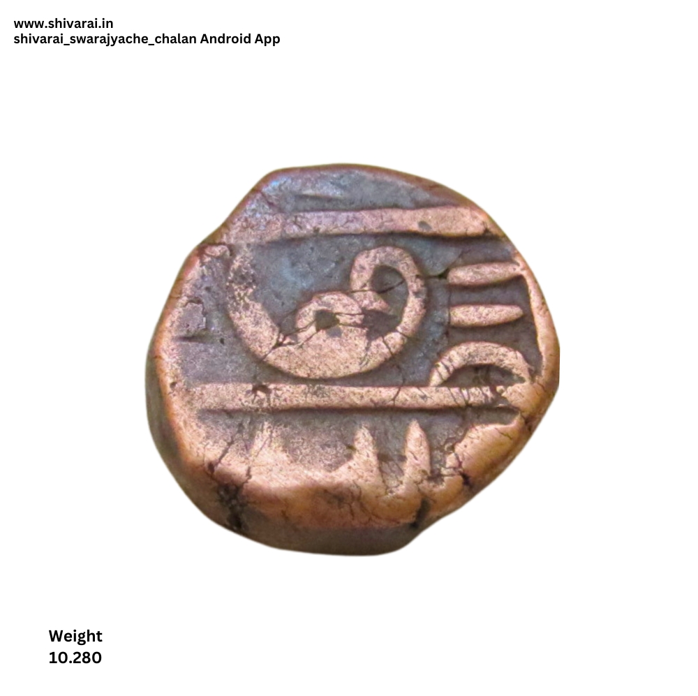तीन लाईन नमुन्यातील चंद्रकोर चिन्हांकीत शिवराई.