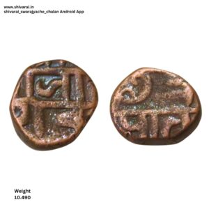 चौकोनी आकाराची शिवराई राजा साव नमुन्याची शिवराई, शिवराईचा आकार चौकोनी. साव अक्षराभोवती अखंड रेषेची बॉर्डर. नाण्याच्या दोन्ही बाजू स्पष्ट आणि ठळक.