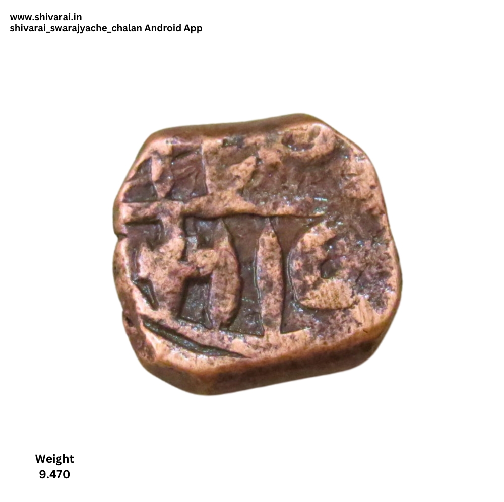 श्री नंतर पोकळ गोल, सूर्य चिन्ह. गोलाचा आकार मोठा असून अक्षरांची जाड लिखावट . छ च्या पोटात एक डॉट. दोन्ही बाजू स्पष्ट आणि ठळक.