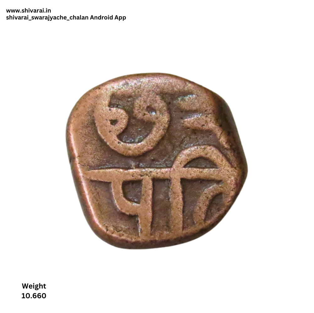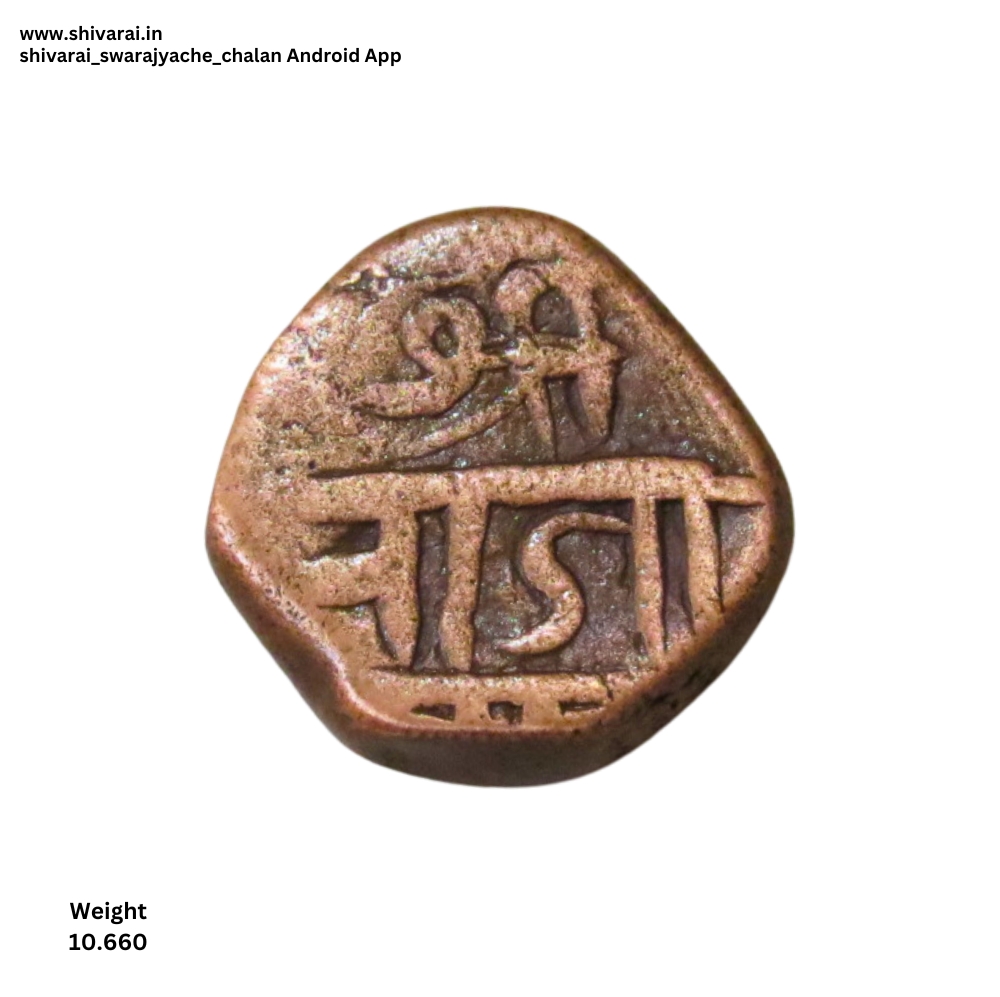 शिवराई चा चौरस आकार. तीन लाईन नमुन्यातील शिवराई. जा चे लिखाण वळणदार. दोन्ही बाजू अत्यंत स्पष्ट आणि ठळक.