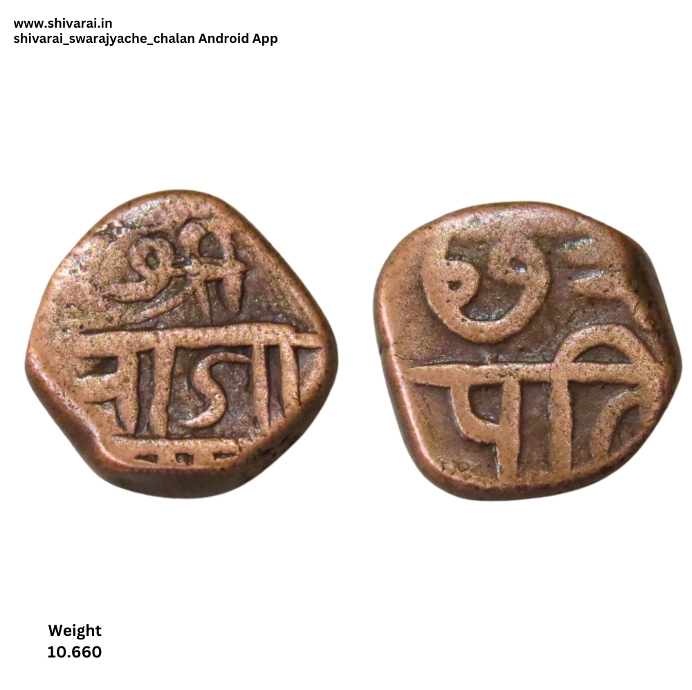 अक्षरांचा मोठा आकार असल्याने नाण्यावर पुढील बाजूस फक्त राजा ह्या शब्दाचा काही भाग दिसत आहे. छ वळणदार. दोन्ही बाजू अत्यंत स्पष्ट आणि ठळक.