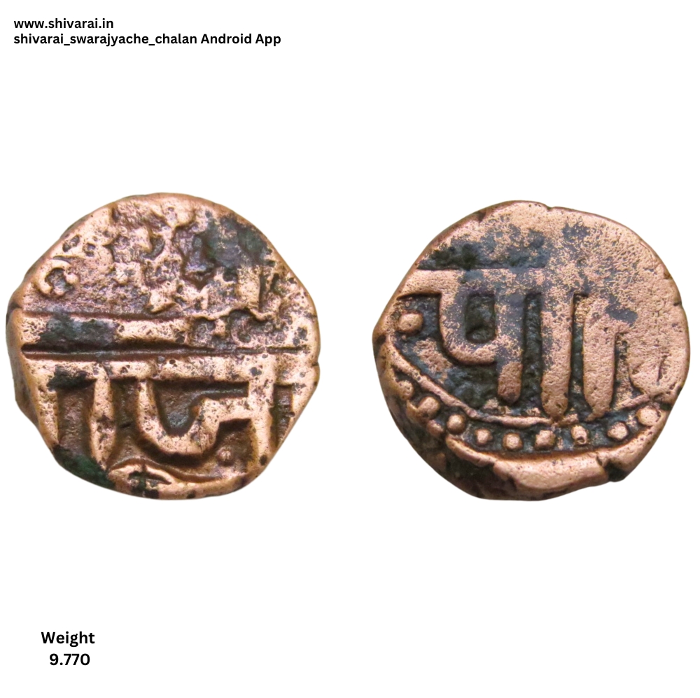 छत्र च्या पोटात एक डॉट. छत्र च्या वर एक डॉट, त्र नंतर एक डॉट. अक्षरांची एकदम वेगळी लिखावट. छत्र बाजूची अक्षरे दंड व शीर्ष रेषेला न चिकटलेली. नाण्याच्या दोन्ही बाजू स्पष्ट आणि ठळक.
