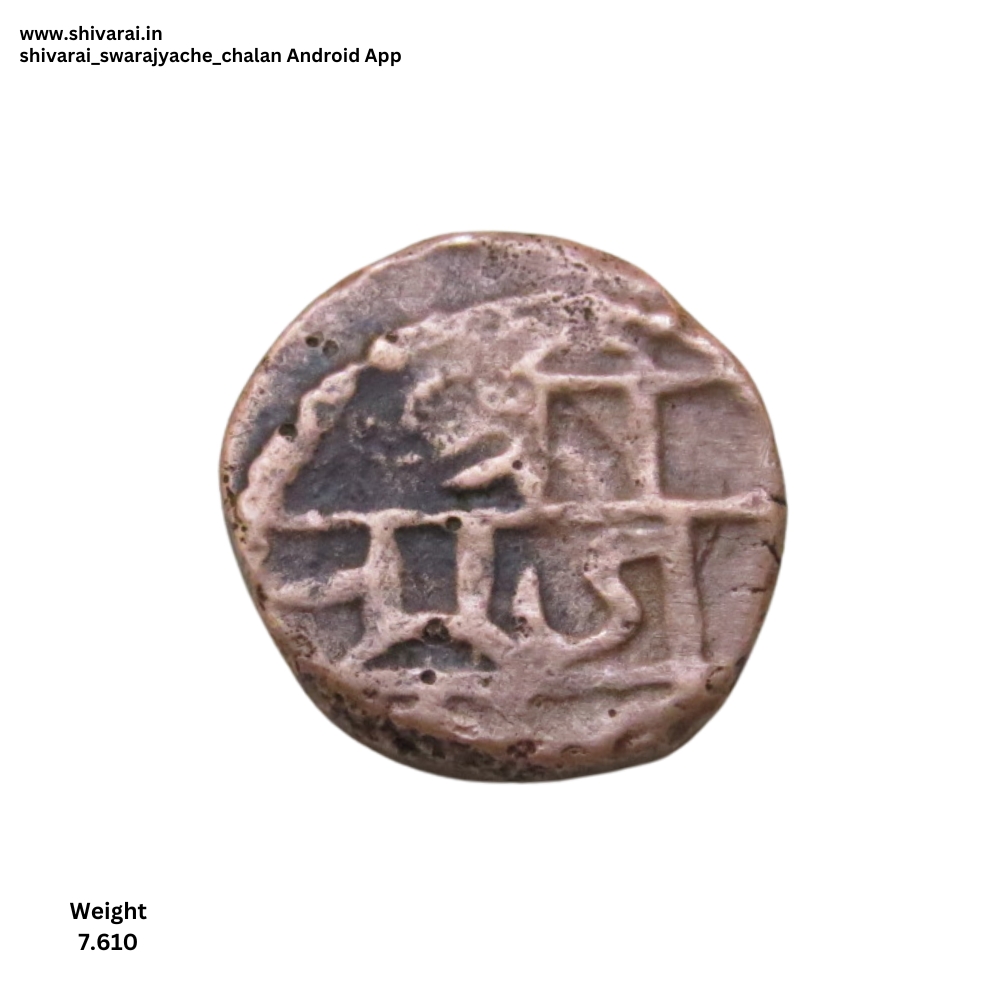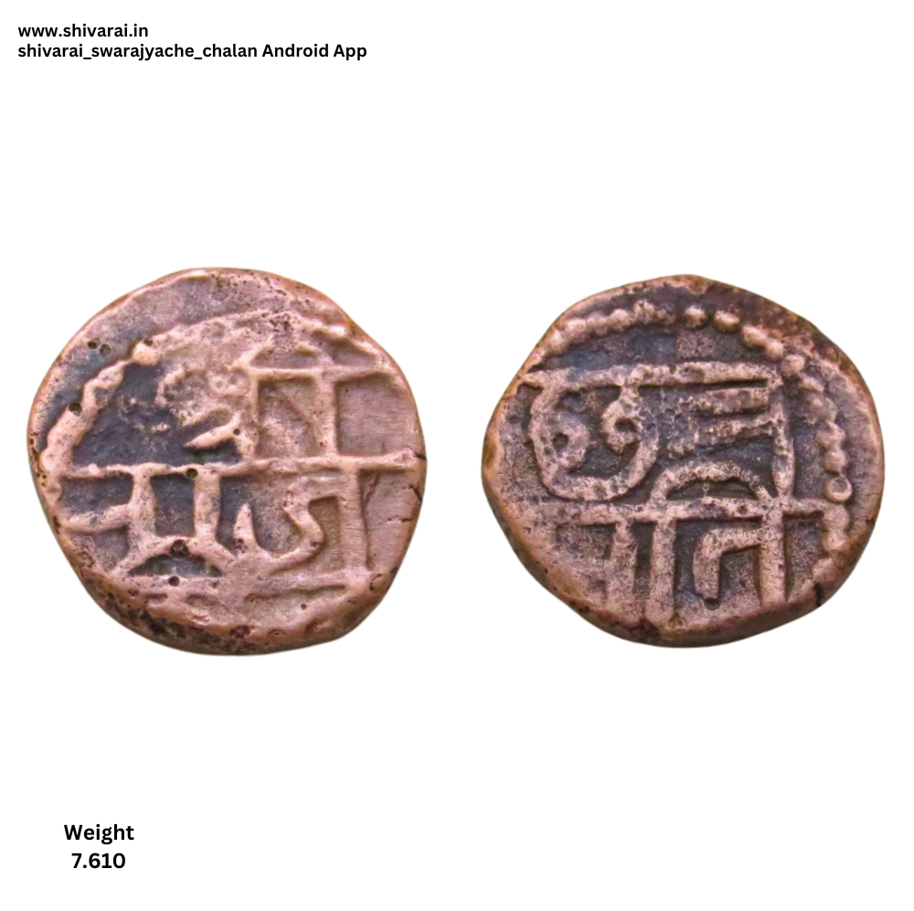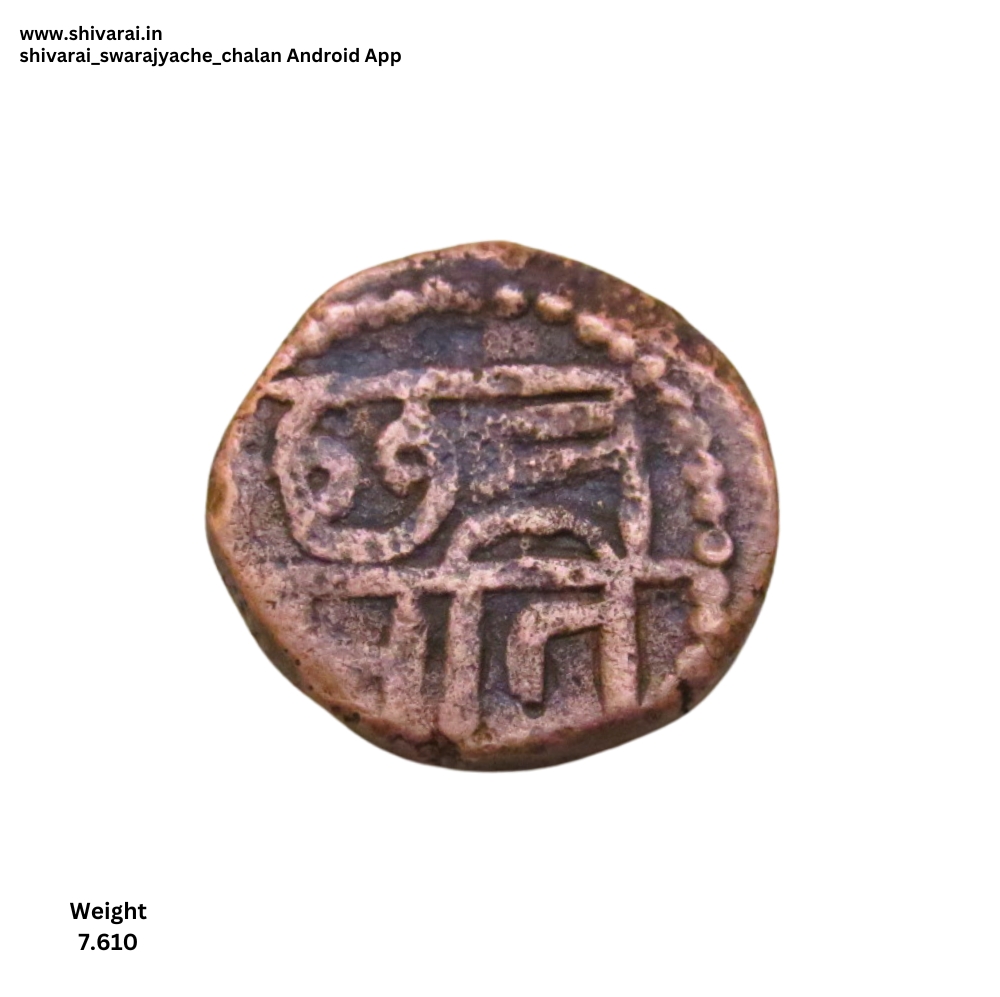 पुढील बाजूस श्री राजा व मागील बाजूस छत्र पति हे शब्द स्पष्ट दिसत आहेत. दोन्ही बाजूला डॉटेड बॉर्डर.