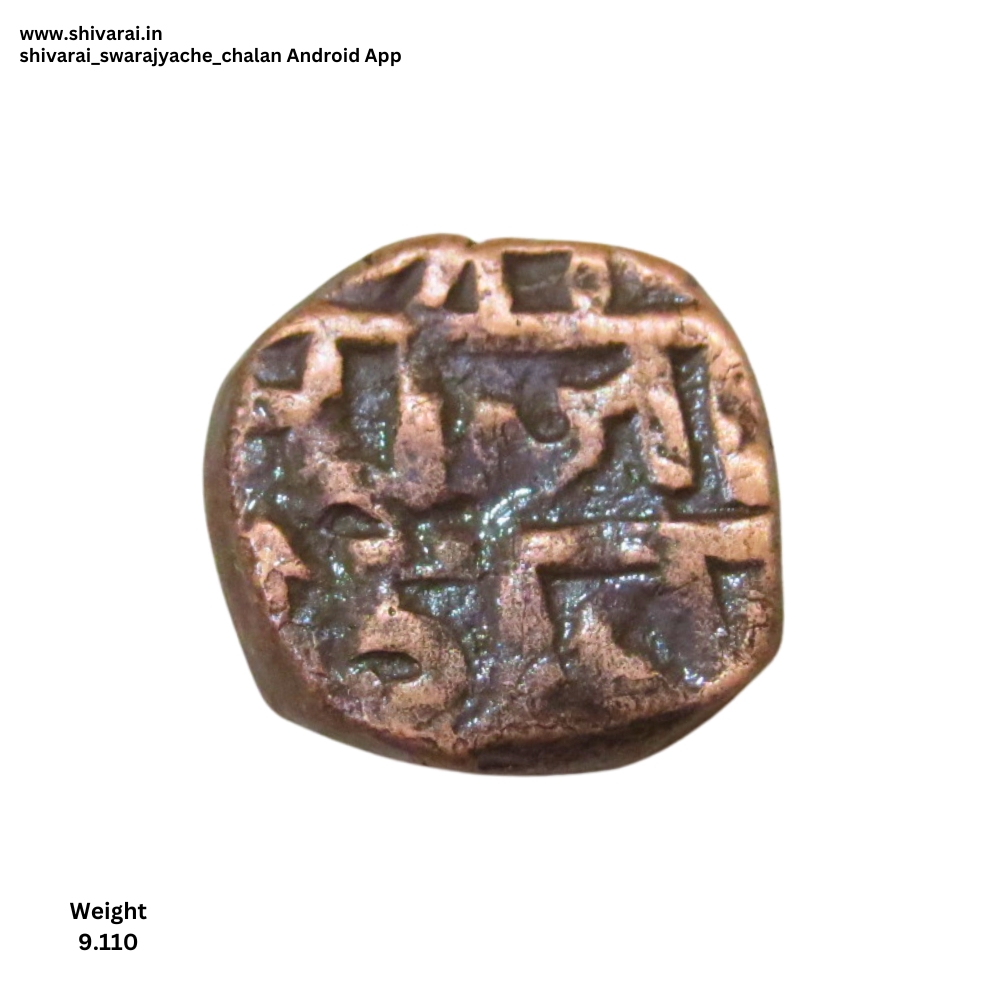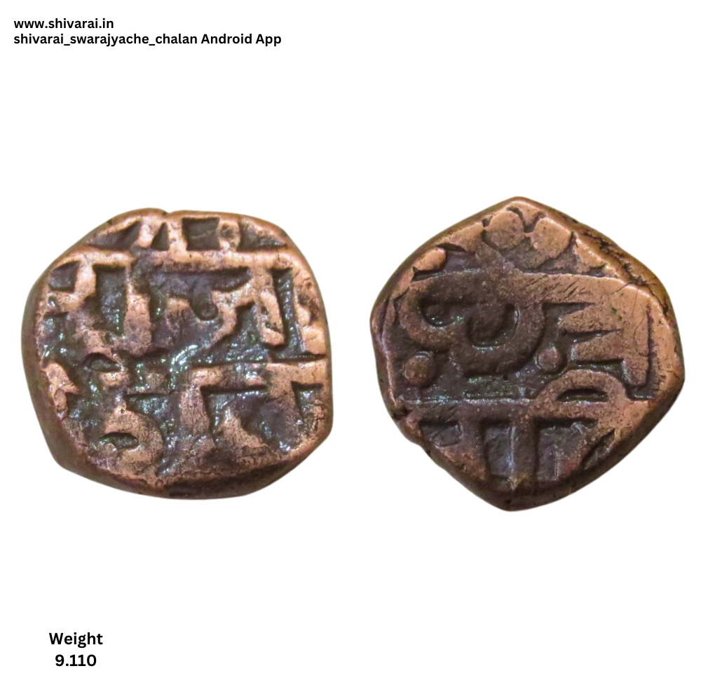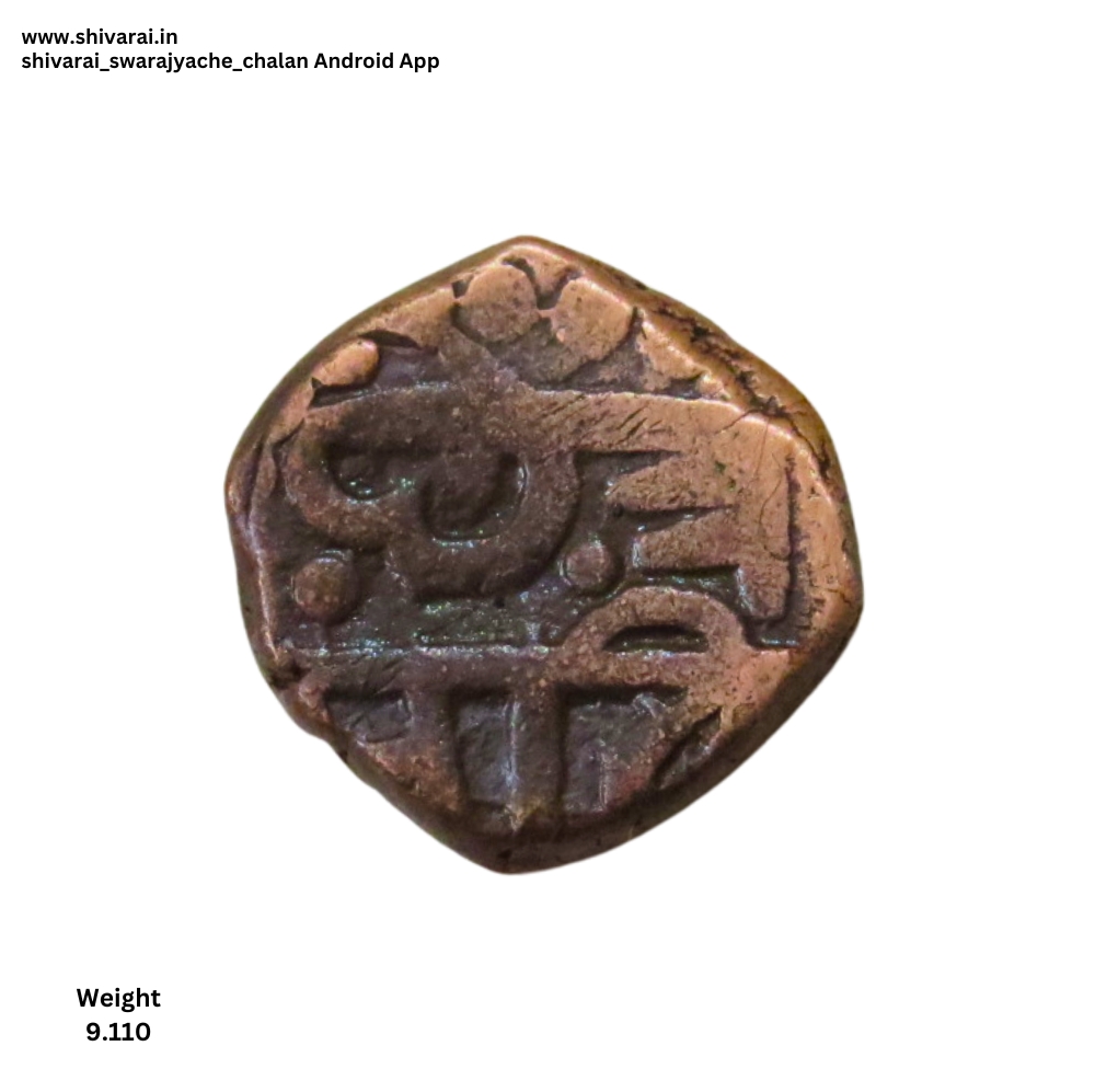 राजा साव नमुन्याची शिवराई. सा चा काही भाग अस्पष्ट असल्याने अक्षर रा सारखे दिसत आहे. छत्र खाली मोठा भरीव डॉट असून, छ आणि त्र परस्परांना चिकटलेले. छत्र च्या वर दुदांडी असण्याची शक्यता. दोन्ही बाजू स्पष्ट आणि ठळक.