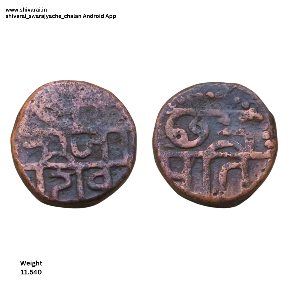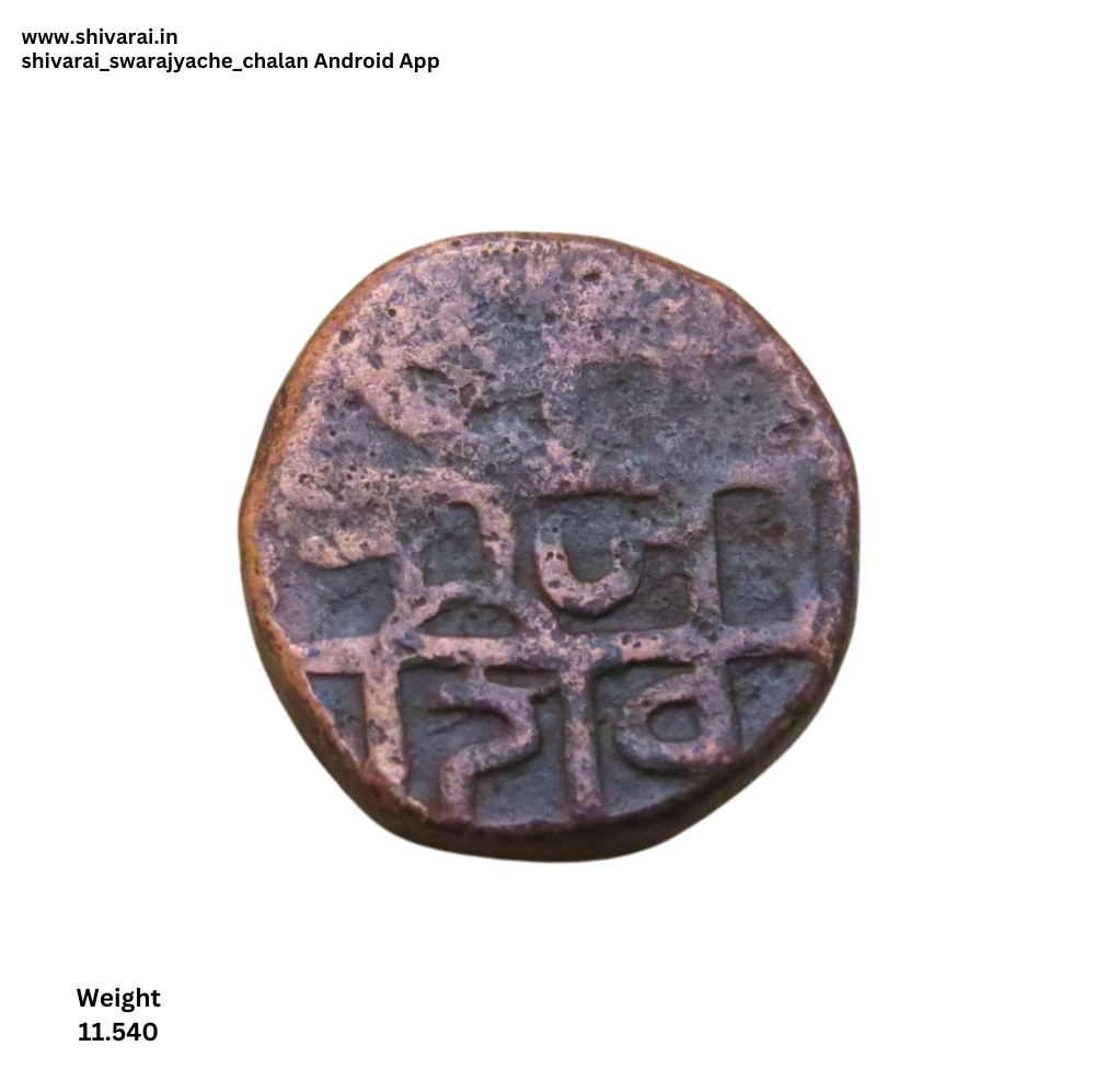 पुढील बाजूस श्री राजा शिव व मागील बाजूस छत्र पति हे शब्द स्पष्ट दिसत आहे. दोन्ही बाजूला डॉटेड बॉर्डर.