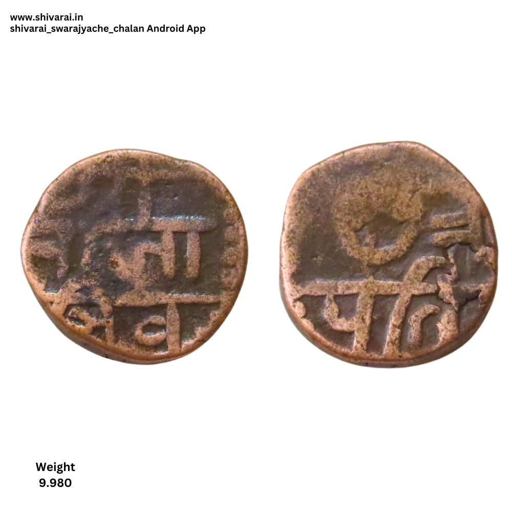 देवनागरी श आणि स चे मिश्रण असलेला नमुना. शीव मधील श हा देवनागरी नमुन्यातील असून त्याला स प्रमाणे आडवी रेषा देखील आहे. नाणे काहीसे अस्पष्ट.