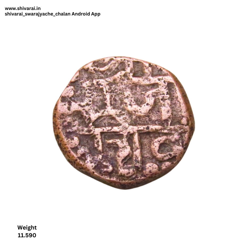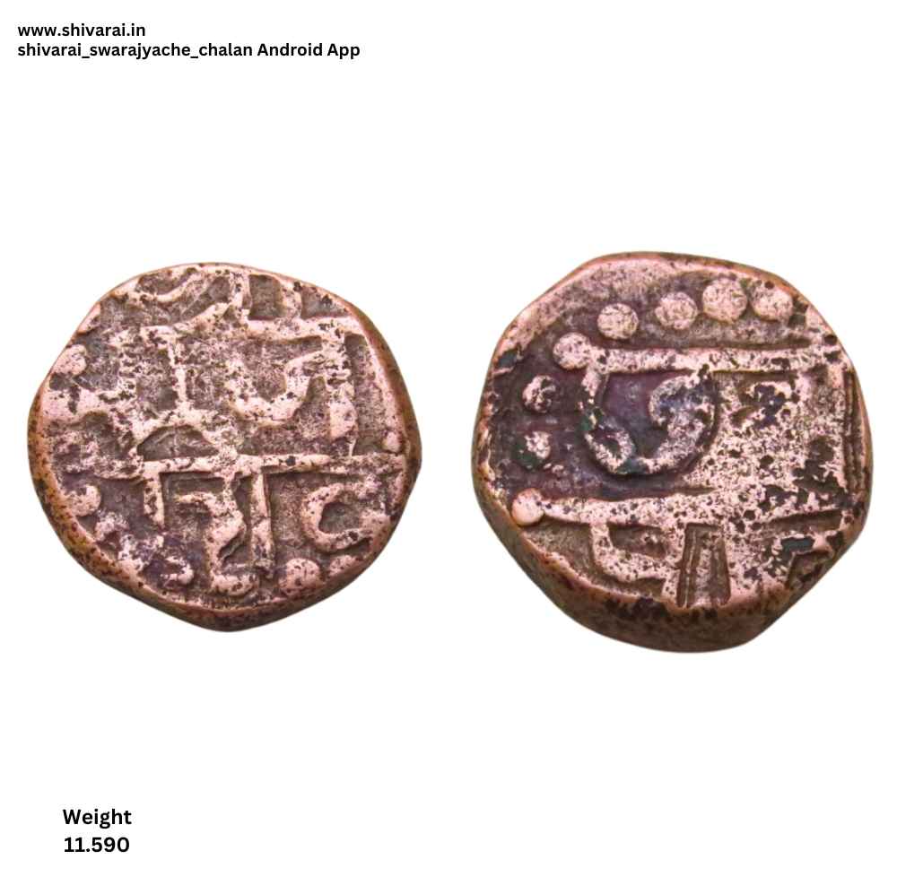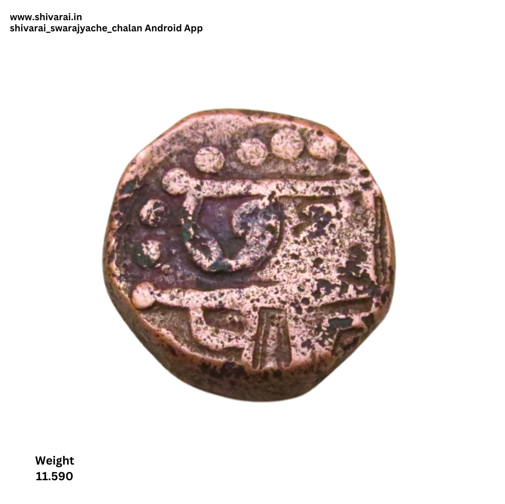 पुढील बाजूस श्री राजा शिव व मागील बाजूस छत्र पति हे शब्द स्पष्ट दिसत आहेत. दोन्ही बाजूला डॉटेड बॉर्डर.