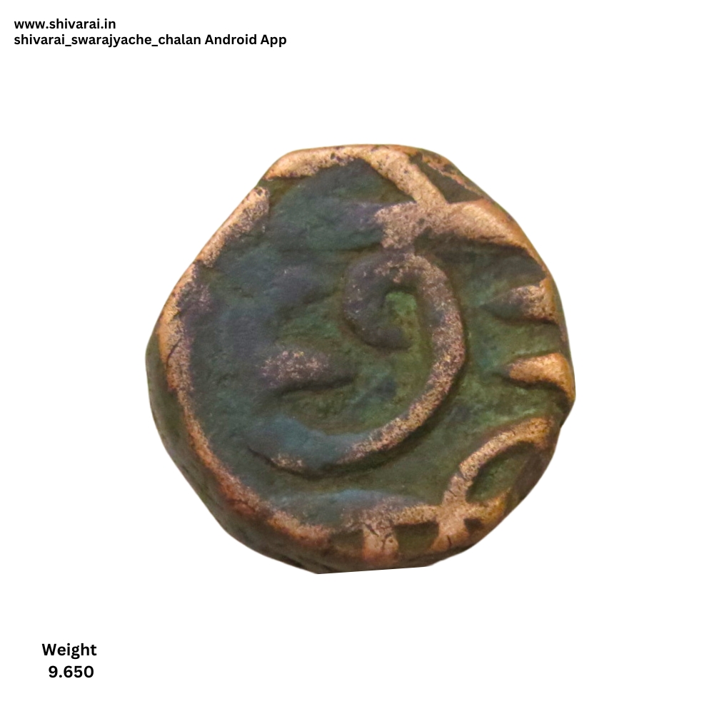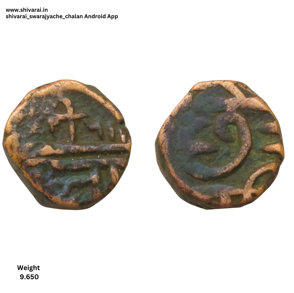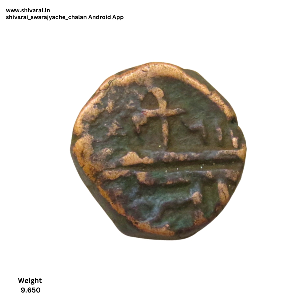 देवनागरी श आणि स चे मिश्रण असलेला नमुना. शीव मधील श हा देवनागरी नमुन्यातील असून त्याला स प्रमाणे आडवी रेषा देखील आहे. नाणे काहीसे अस्पष्ट.