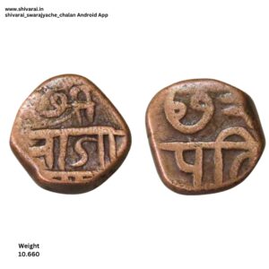 पा शब्दांकीत शिवराई श्री नंतर पा हे अक्षर. छ ला मात्रा. शिवराई दोन्ही बाजू अत्यंत स्पष्ट आणि ठळक. नाणे फोटो प्रमाणे. वजन : ९.९२०