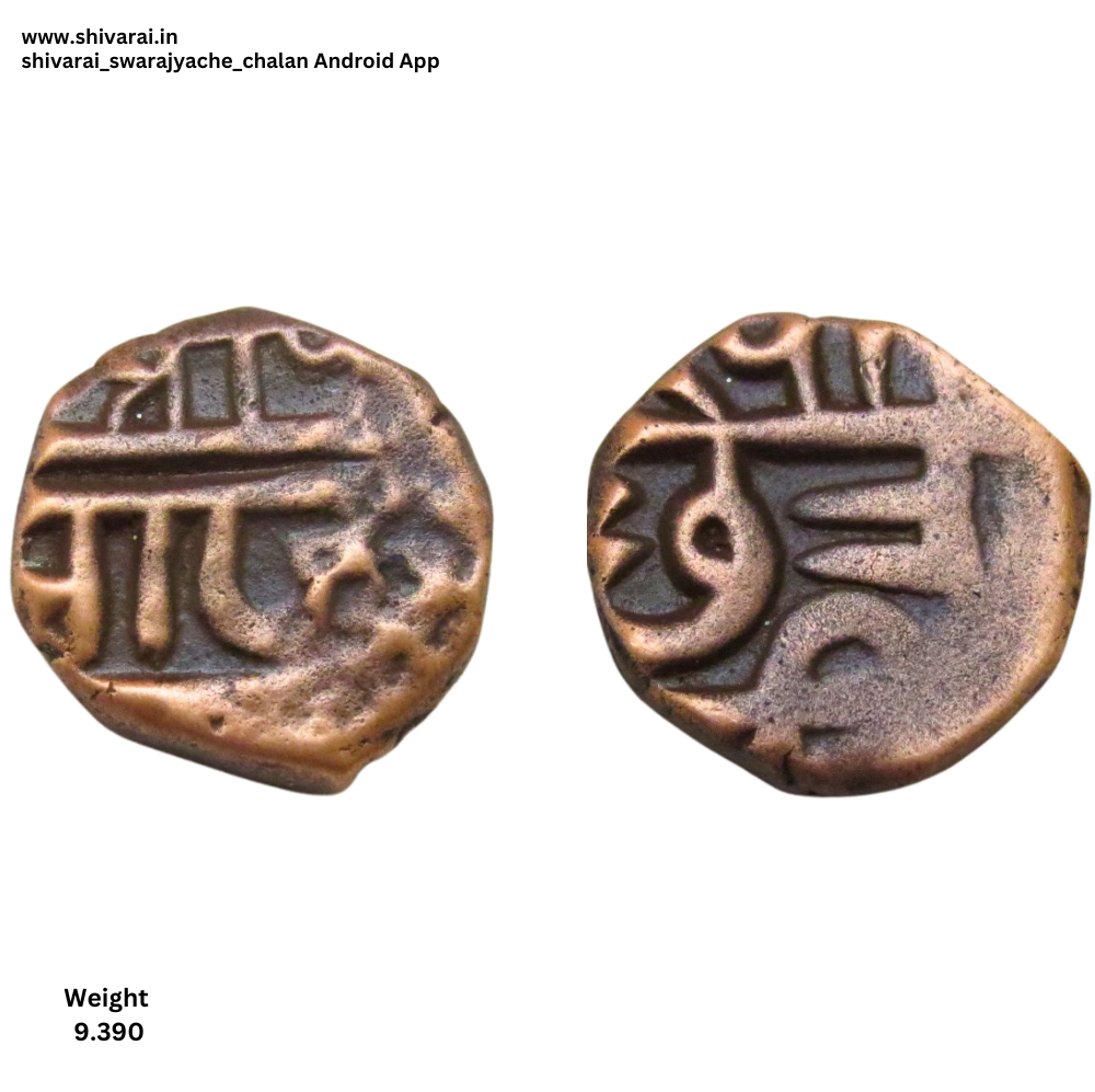 छत्र नंतर अत्यंत वेगळ्या प्रकारचे झाड चिन्ह. झाडांच्या शाखा सलग नसून फक्त खालील आणि वरील शाखा आहेत. मधल्या भागातील शाखा नसलेला झाडाचा नमुना. दुदांडी शिवराई मधील कमी वजनाची शिवराई. दुदांडी मध्ये कमी वजनाच्या शिवराई अत्यंत कमी प्रमाणात आढळून येतात. दोन्ही बाजू अत्यंत स्पष्ट आणि ठळक.