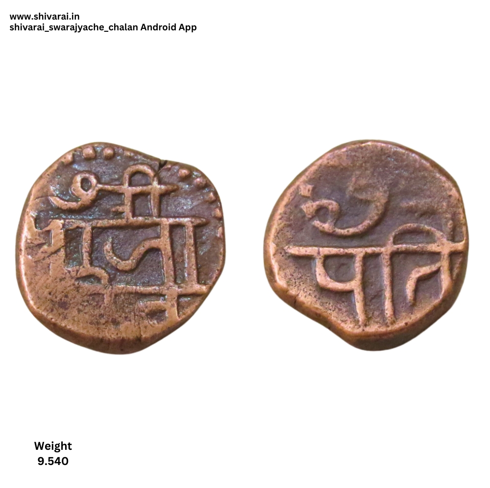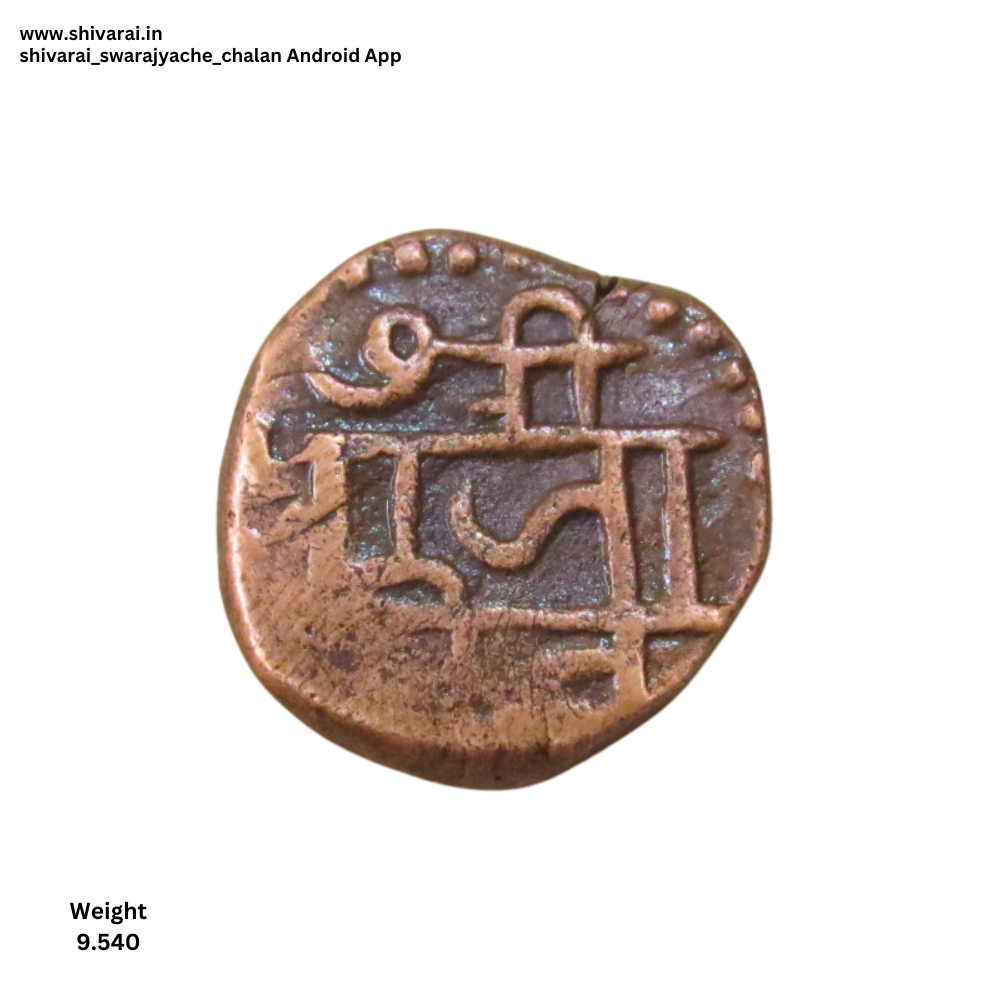 तीन लाईन नमुन्याची शिवराई. चौकोनी आकाराची शिवराई. सी ची वेलांटी शीर्ष रेषेखाली. छत्र आणि पती मध्ये दोन आडवे डॉट. दोन्ही बाजू स्पष्ट आणि ठळक. नाणे फोटो प्रमाणे.