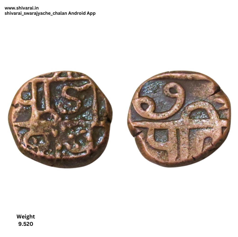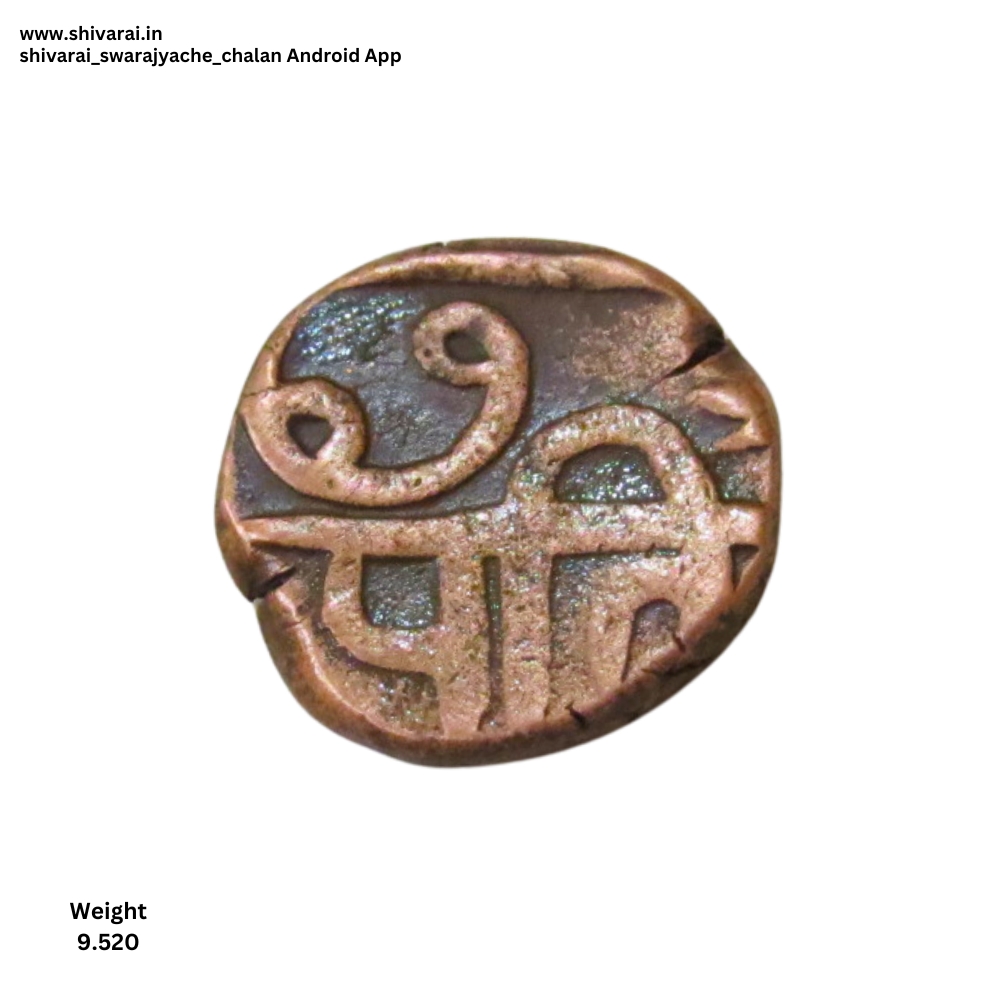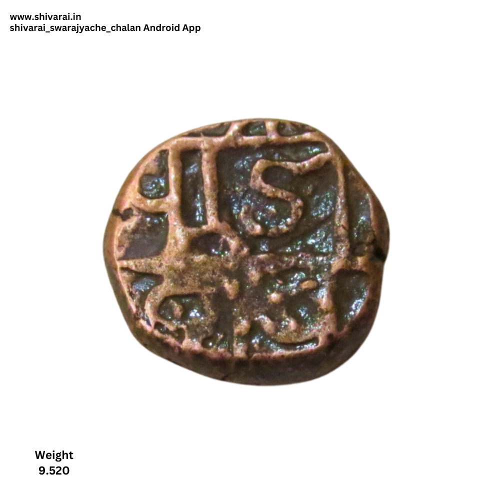 शिवराई चा आकार आयताकृती. श्री राजा सिव पुढील बाजूस लिहिलं असून मागील बाजूस छत्रपति. छ चे वेगळे लिखाण. तीन गोल गाठ असलेला छ नमुना.