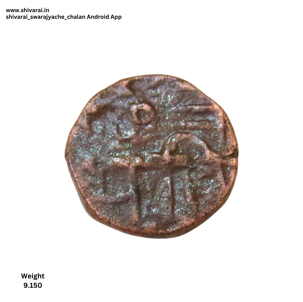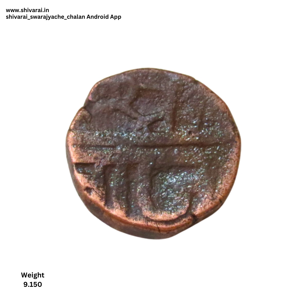 राजा साव नमुन्याची शिवराई. सा चा काही भाग अस्पष्ट असल्याने अक्षर रा सारखे दिसत आहे. छत्र खाली मोठा भरीव डॉट असून, छ आणि त्र परस्परांना चिकटलेले. छत्र च्या वर दुदांडी असण्याची शक्यता. दोन्ही बाजू स्पष्ट आणि ठळक.