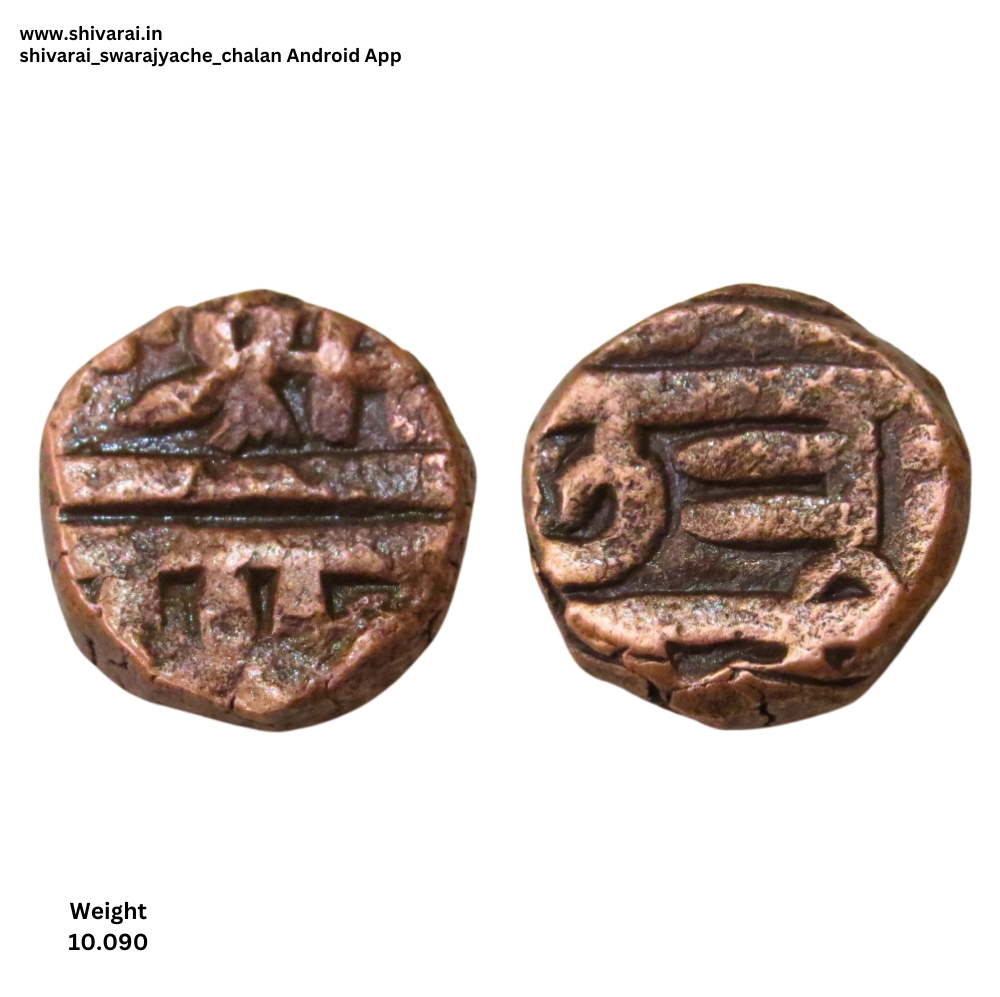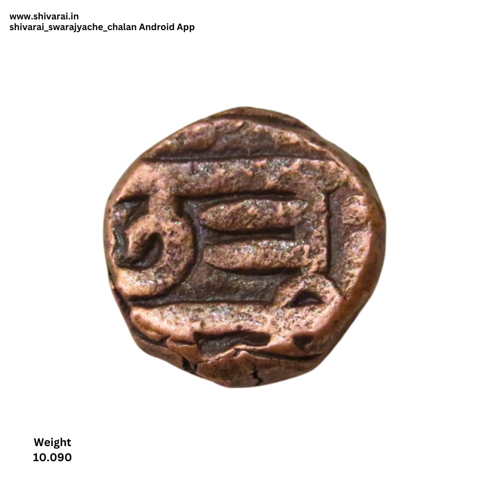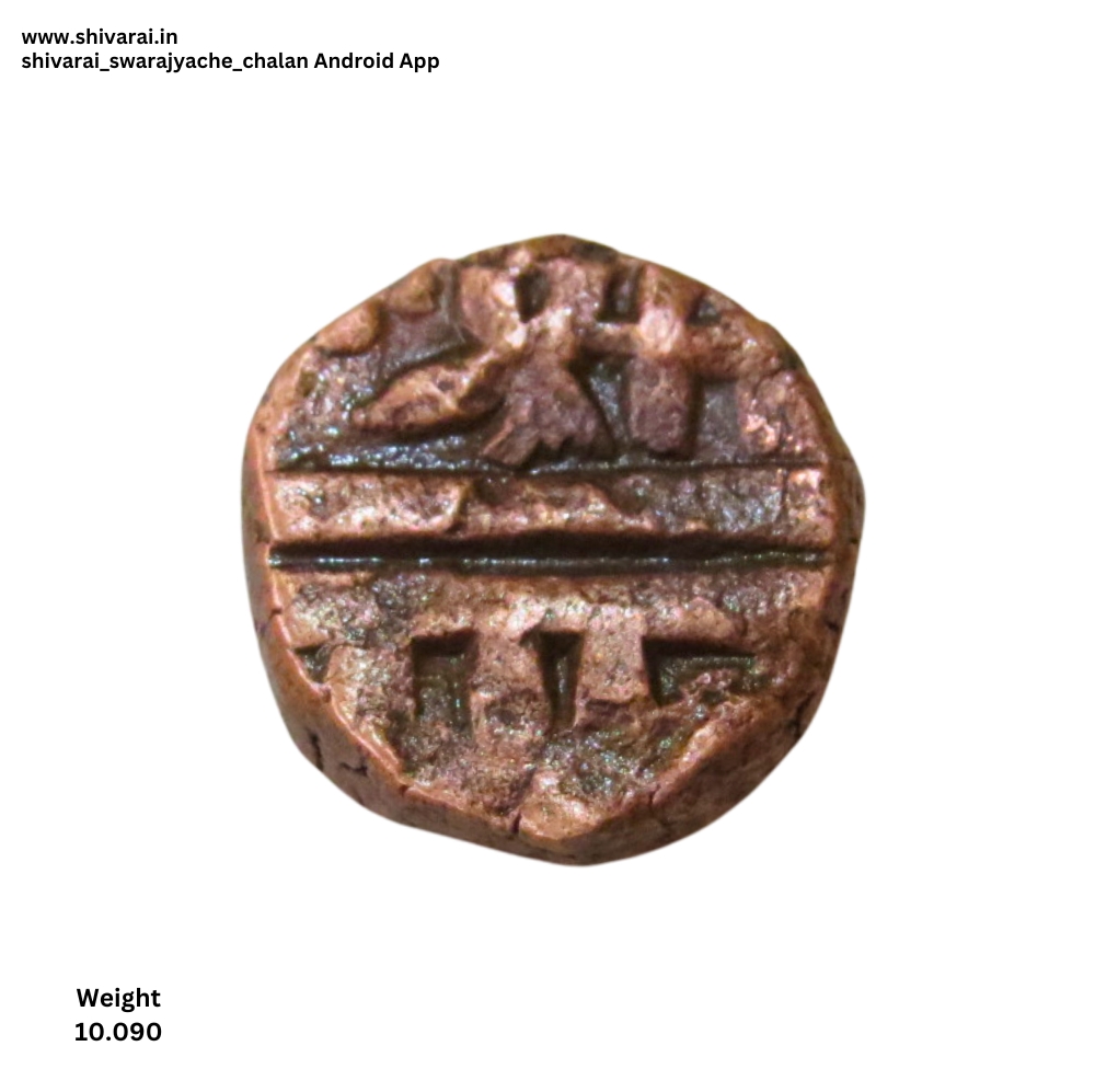 चिन्हांकीत शिवराई श्री आधी चंद्रकोर आणि पोकळ गोल चिन्ह. छत्र च्या पोटात डॉट. छत्र वर अधिक चिन्ह त्याच्या बाजूला डॉट्स. नाण्याच्या दोन्ही बाजू स्पष्ट आणि ठळक.