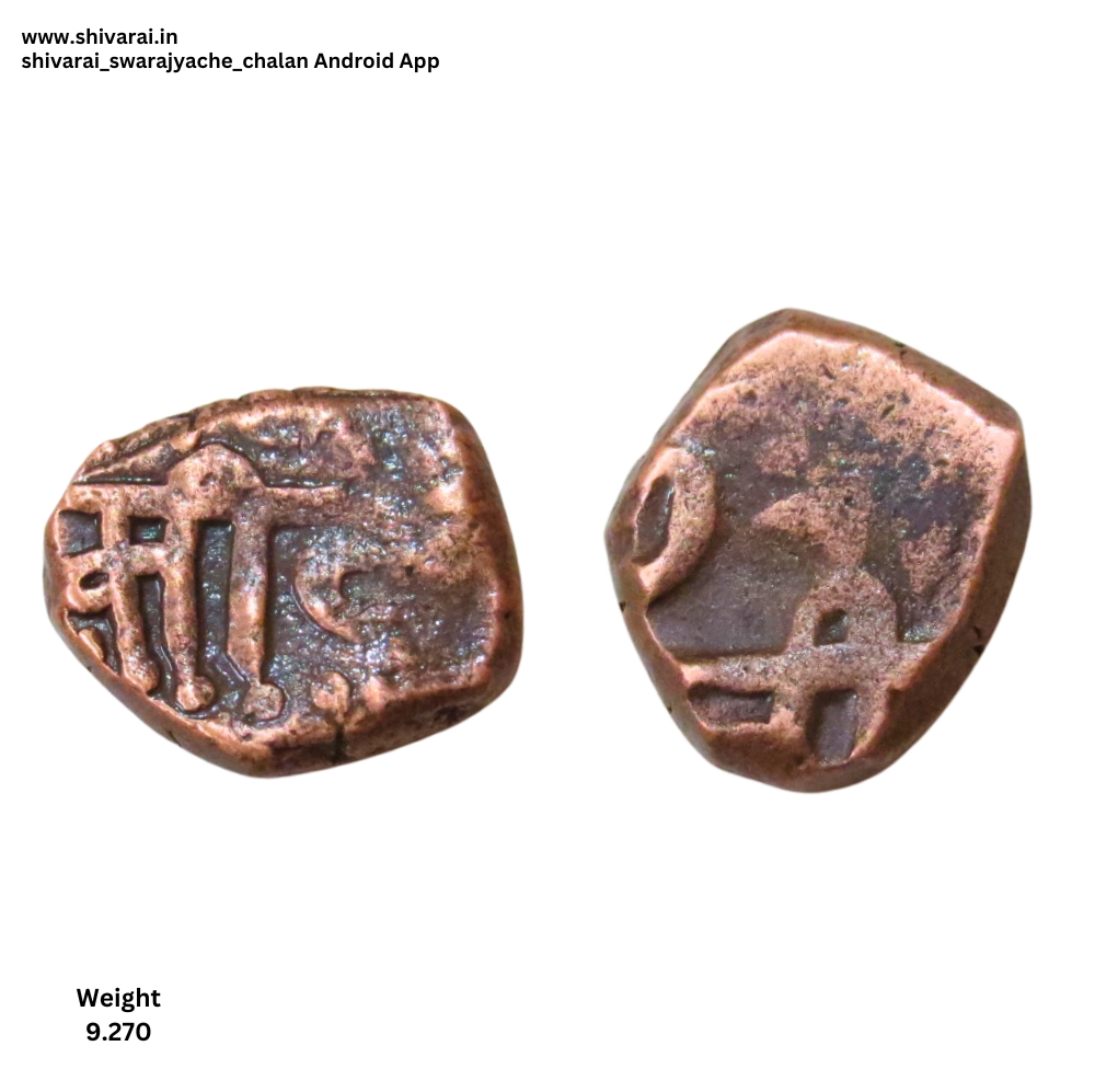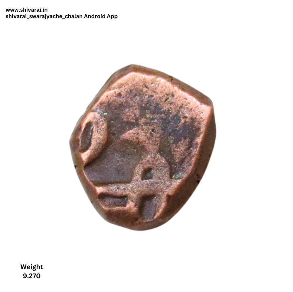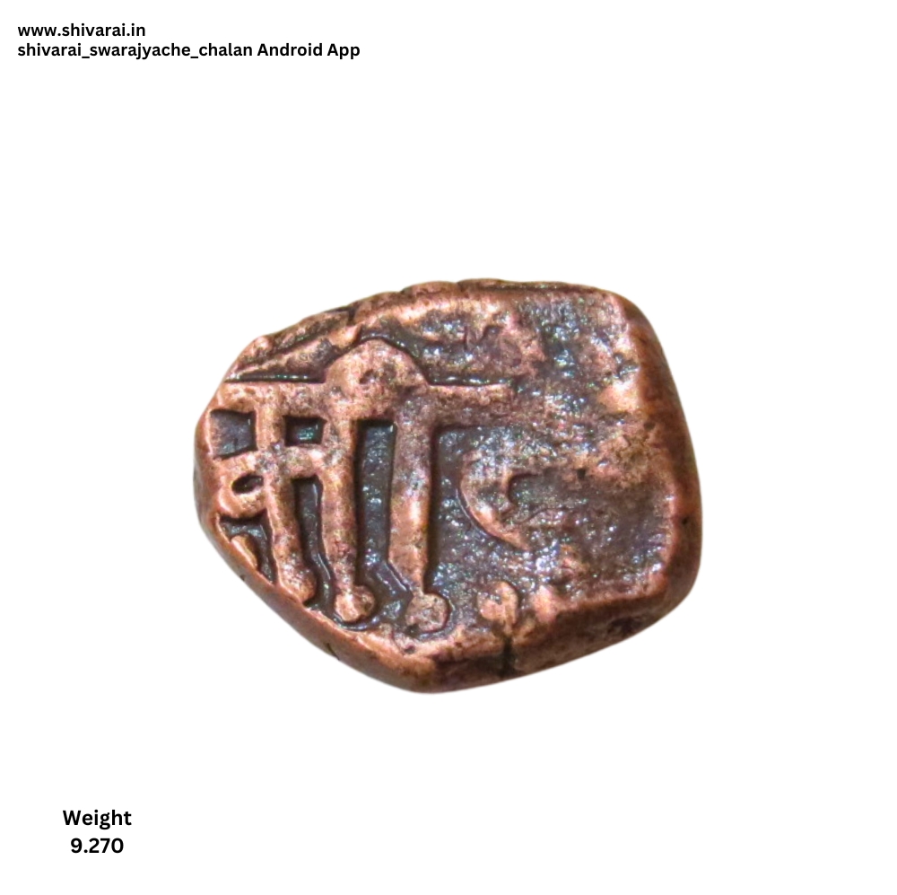 दुदांडी शिवराई. श्री नंतर चंद्रकोर चिन्ह. छत्र च्या वर डॉट्स ची रचना. दोन्ही बाजू स्पष्ट आणि ठळक. नाणे फोटो प्रमाणे. वजन – १०.२३० ग्रॅम.