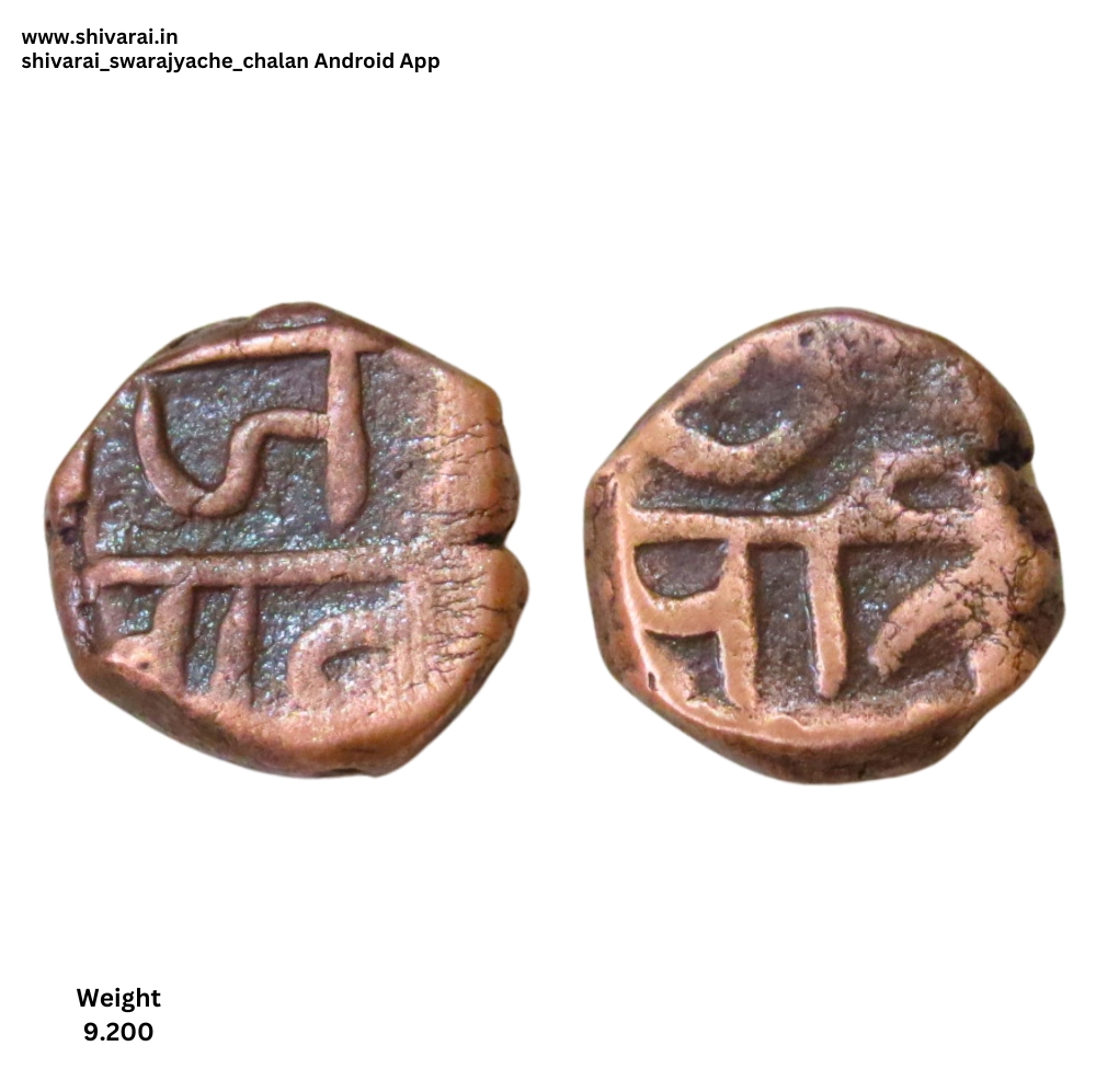 शिवराई साव नमुना शिवराई. स साधारण कट झालेला. नाणे फोटो प्रमाणे. वजन : ग्रॅम ९.२००
