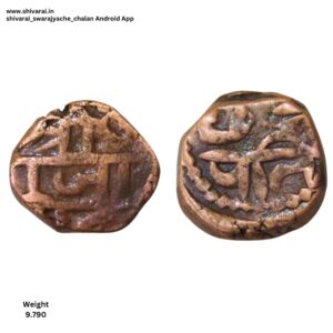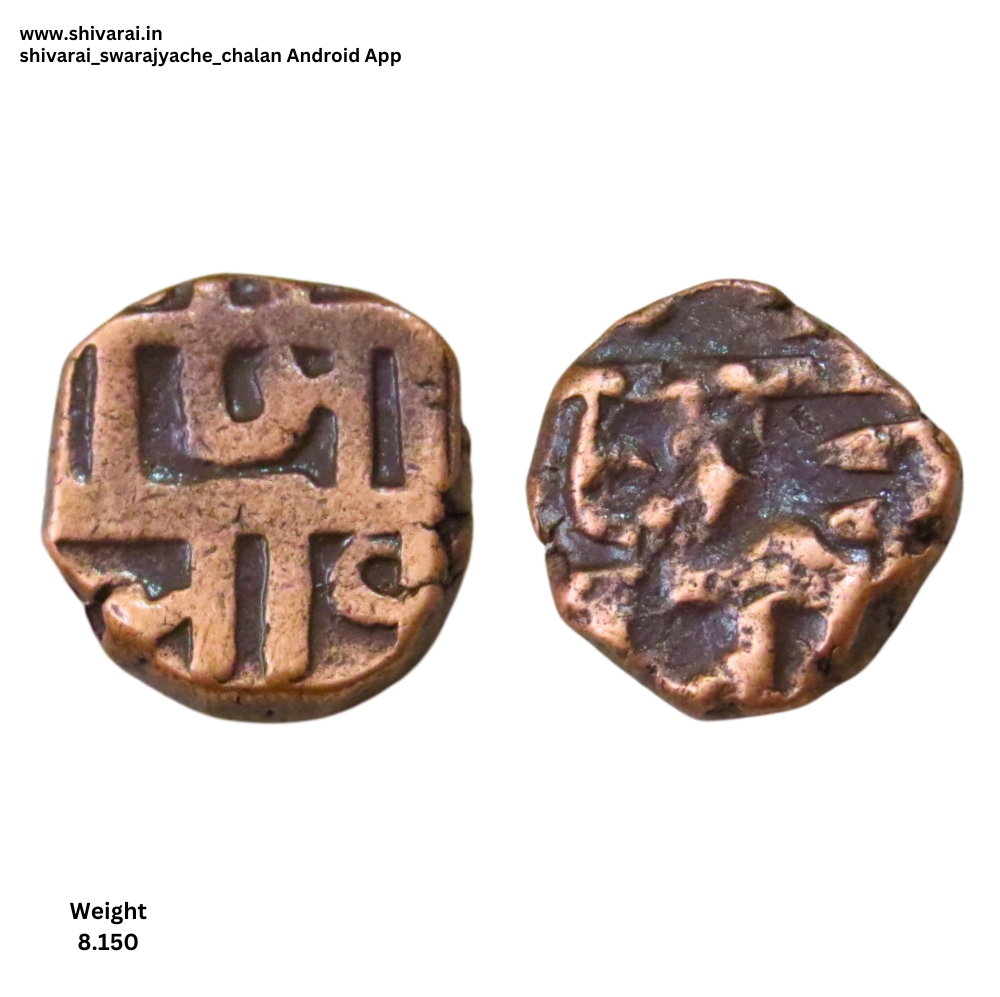 तीन लाईन नमुन्याची शिवराई. चौकोनी आकाराची शिवराई. सी ची वेलांटी शीर्ष रेषेखाली. छत्र आणि पती मध्ये दोन आडवे डॉट. दोन्ही बाजू स्पष्ट आणि ठळक. नाणे फोटो प्रमाणे.
