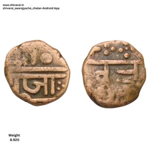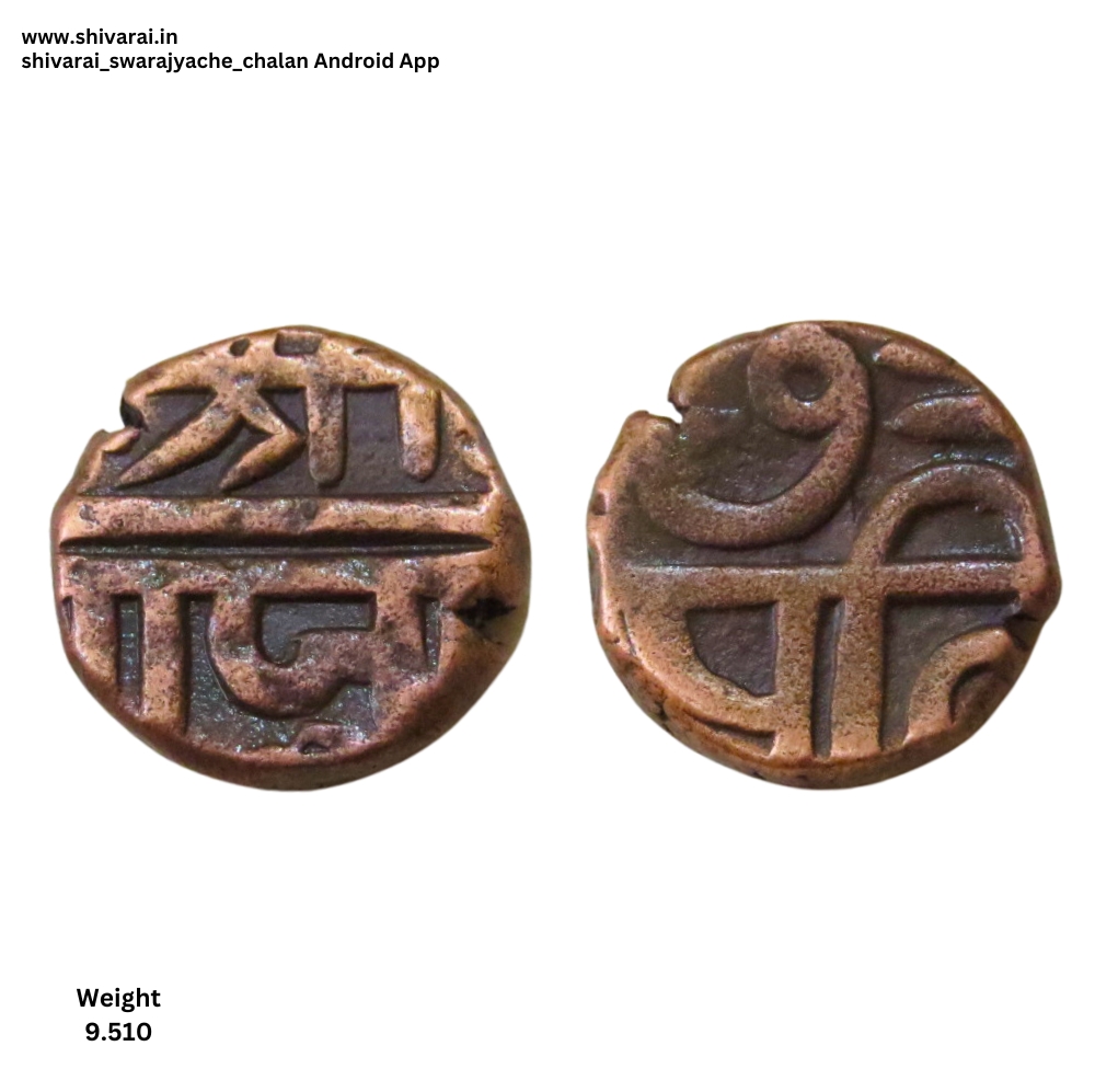 चौकोनी आकाराची रेट्रो शिवराई शिवराई चा आकार चौकोनी असून छ उलट असून आरशातील प्रतिमेप्रमाणे आहे. त्याचा काही भाग दिसत आहे. त्र नंतर झाड चिन्ह असून छत्र च्या वर वेगळ्या चिन्हाचा काही भाग दिसत आहे. दोन्ही बाजू स्पष्ट आणि ठळक.