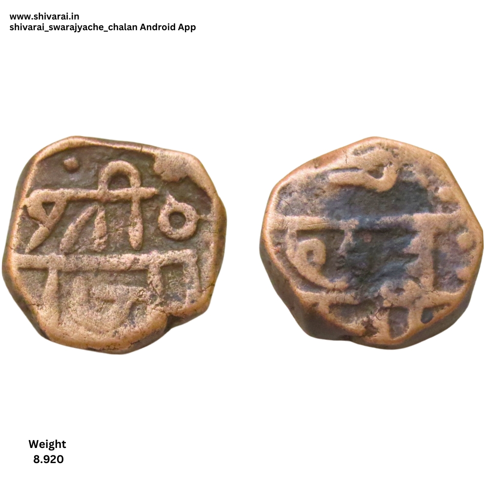 तीन लाईन नमुन्याची शिवराई. राजा सीव नमुना. अक्षरांची बारीक जाडी. छत्र पति भोवती अत्यंत बारीक ठिपक्यांची म्हणजेच मोतीचूर ठिपक्यांची बॉर्डर.