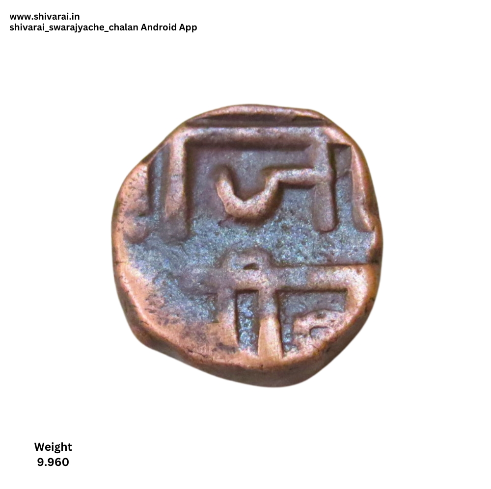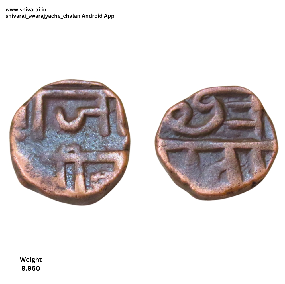 दुदांडी शिवराई. श्री आधी चंद्रकोर. छत्र च्या वर अधिक चिन्ह. त्याच्या दोन्ही बाजूला तीन तीन ठिपक्यांची रचना. छ च्या पोटात एक डॉट. दोन्ही बाजू अत्यंत स्पष्ट आणि ठळक. नाणे फोटो प्रमाणे.