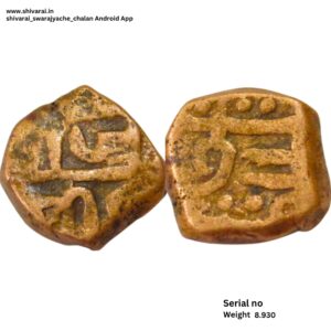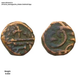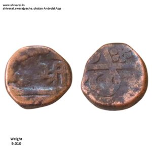 तीन लाईन नमुन्याची शिवराई. चौकोनी आकाराची शिवराई. सी ची वेलांटी शीर्ष रेषेखाली. छत्र आणि पती मध्ये दोन आडवे डॉट. दोन्ही बाजू स्पष्ट आणि ठळक. नाणे फोटो प्रमाणे.