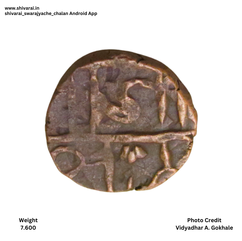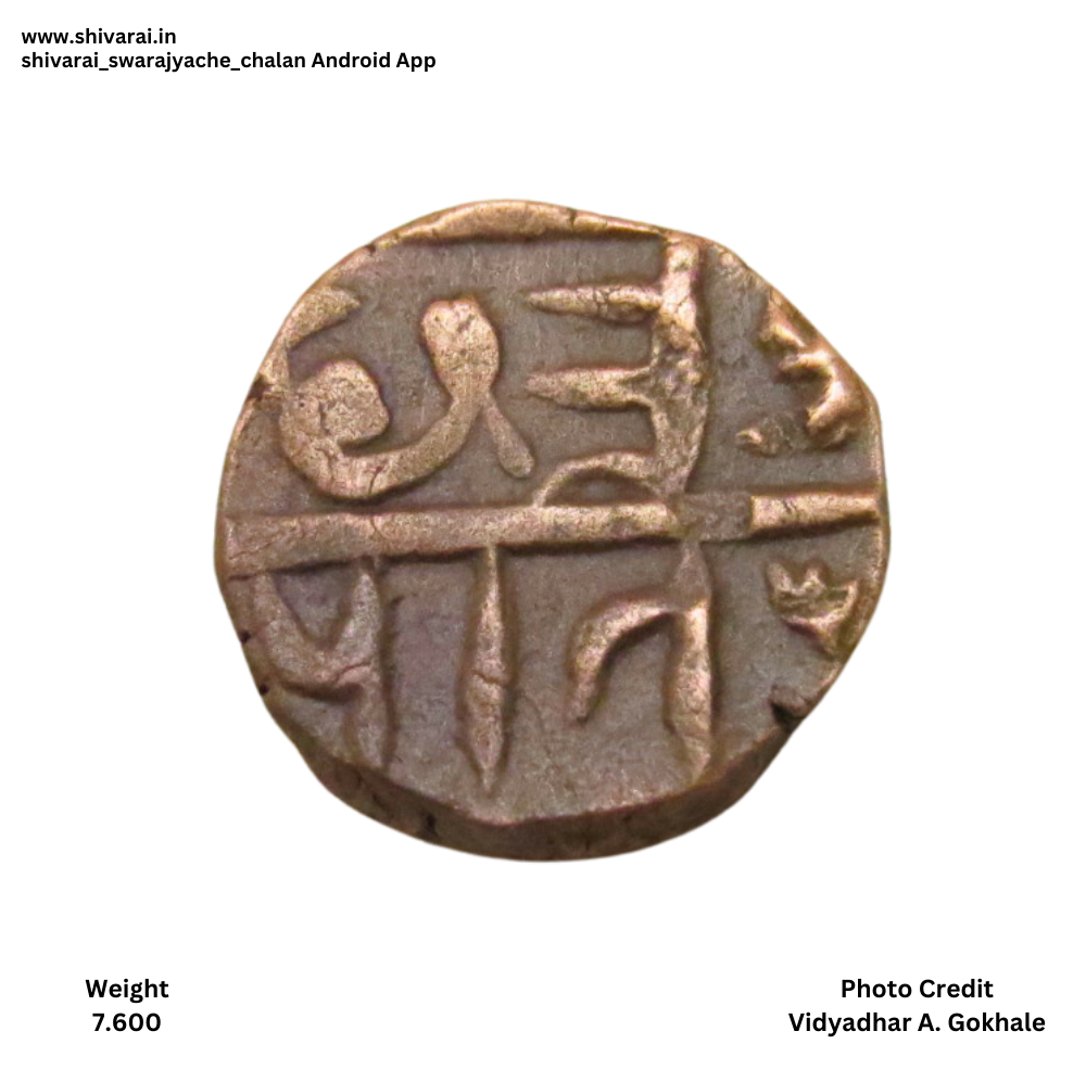 चिन्हांकीत शिवराई श्री आधी चंद्रकोर आणि पोकळ गोल चिन्ह. छत्र च्या पोटात डॉट. छत्र वर अधिक चिन्ह त्याच्या बाजूला डॉट्स. नाण्याच्या दोन्ही बाजू स्पष्ट आणि ठळक.