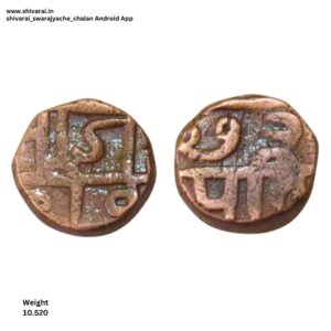 तीन लाईन नमुन्याची शिवराई. चौकोनी आकाराची शिवराई. सी ची वेलांटी शीर्ष रेषेखाली. छत्र आणि पती मध्ये दोन आडवे डॉट. दोन्ही बाजू स्पष्ट आणि ठळक. नाणे फोटो प्रमाणे.