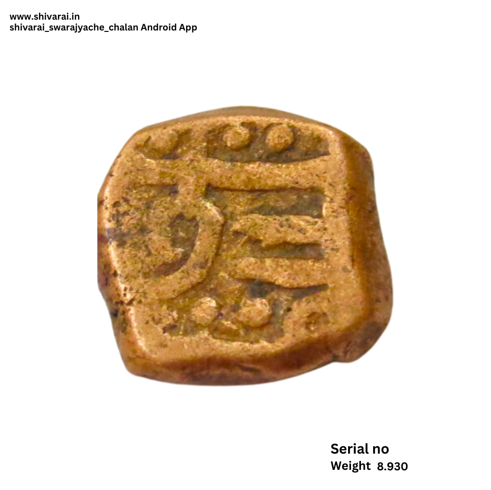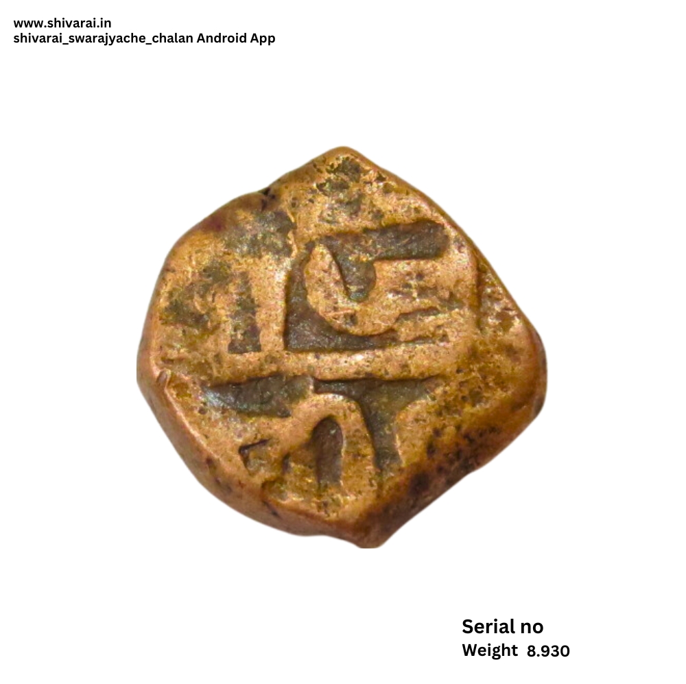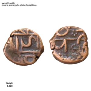 तीन लाईन नमुन्याची शिवराई. चौकोनी आकाराची शिवराई. सी ची वेलांटी शीर्ष रेषेखाली. छत्र आणि पती मध्ये दोन आडवे डॉट. दोन्ही बाजू स्पष्ट आणि ठळक. नाणे फोटो प्रमाणे.