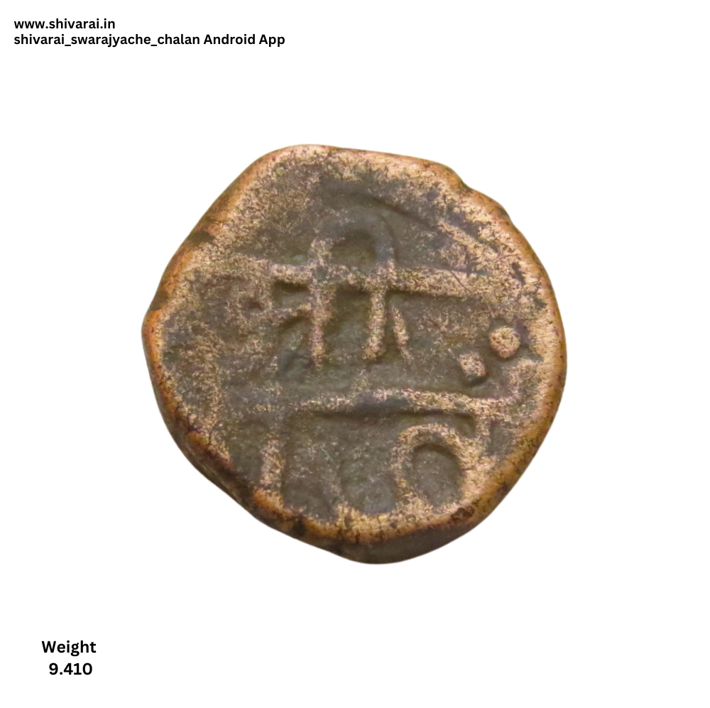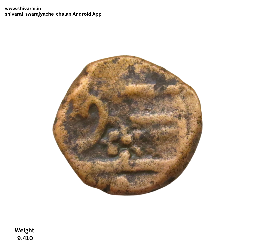 अधिक चिन्हांकीत शिवराई छत्र च्या वर अधिक चिन्ह. त्याच्या दोन्ही बाजूला डॉट चिन्ह. छत्र नंतर डॉट्स. दोन्ही बाजू अत्यंत स्पष्ट आणि ठळक.