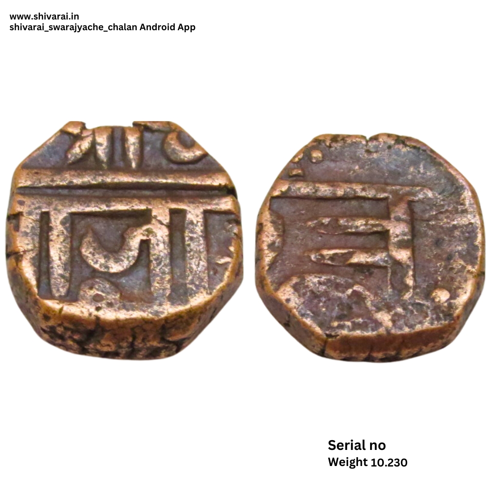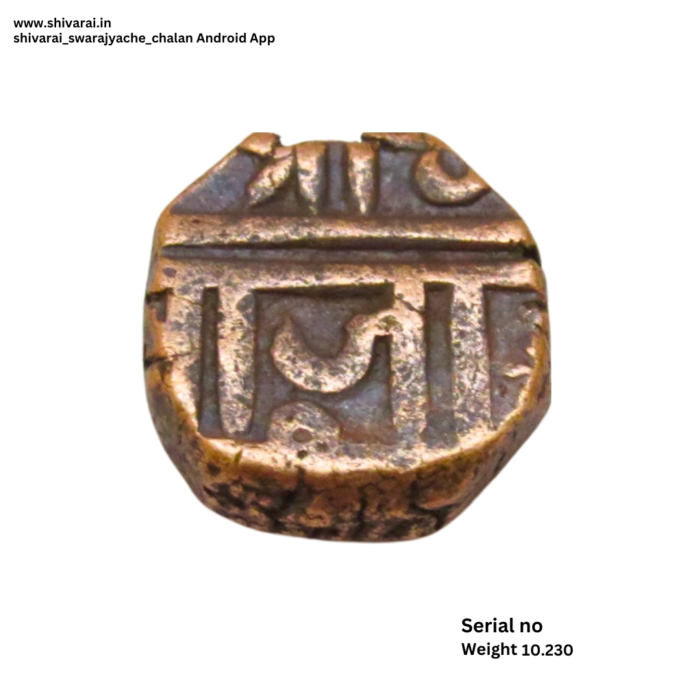 दुदांडी शिवराई. श्री नंतर चंद्रकोर चिन्ह. छत्र च्या वर डॉट्स ची रचना. दोन्ही बाजू स्पष्ट आणि ठळक. नाणे फोटो प्रमाणे. वजन – १०.२३० ग्रॅम.