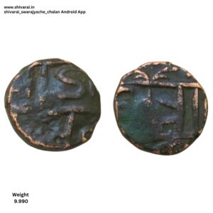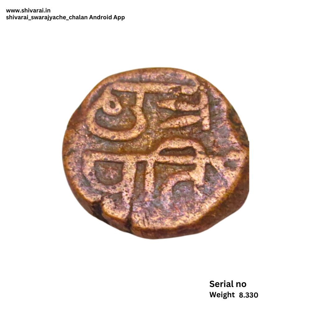चिन्हांकीत शिवराई श्री आधी चंद्रकोर आणि पोकळ गोल चिन्ह. छत्र च्या पोटात डॉट. छत्र वर अधिक चिन्ह त्याच्या बाजूला डॉट्स. नाण्याच्या दोन्ही बाजू स्पष्ट आणि ठळक.