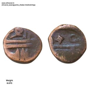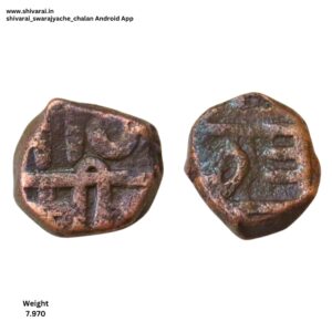 छत्र नंतर अत्यंत वेगळ्या प्रकारचे झाड चिन्ह. झाडांच्या शाखा सलग नसून फक्त खालील आणि वरील शाखा आहेत. मधल्या भागातील शाखा नसलेला झाडाचा नमुना. दुदांडी शिवराई मधील कमी वजनाची शिवराई. दुदांडी मध्ये कमी वजनाच्या शिवराई अत्यंत कमी प्रमाणात आढळून येतात. दोन्ही बाजू अत्यंत स्पष्ट आणि ठळक.